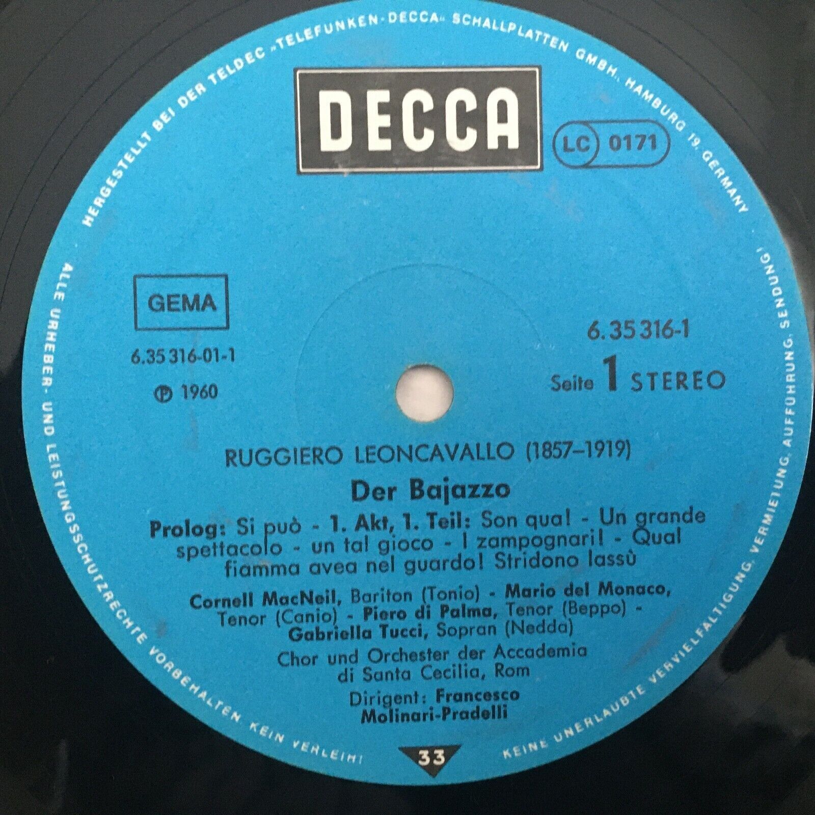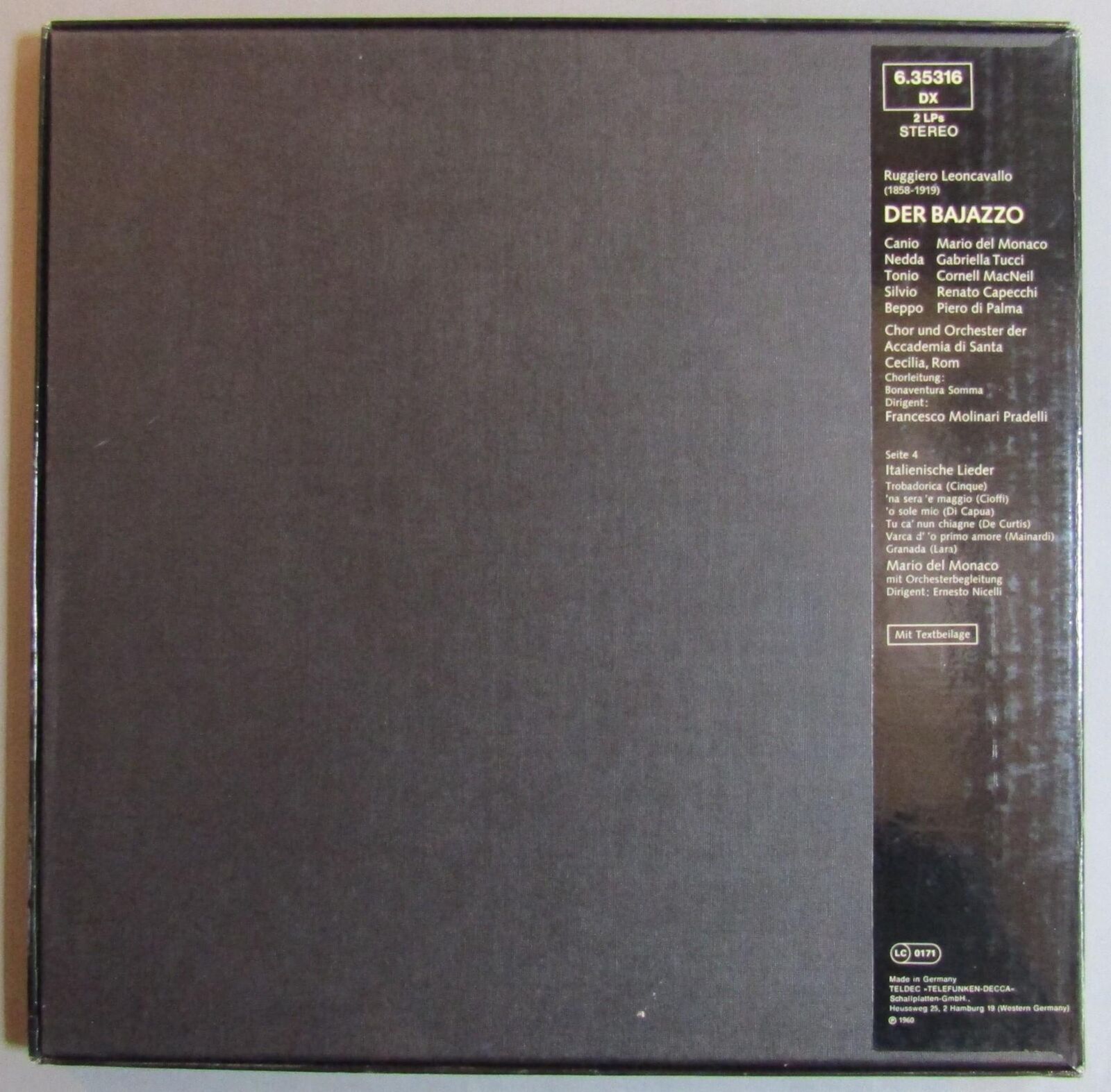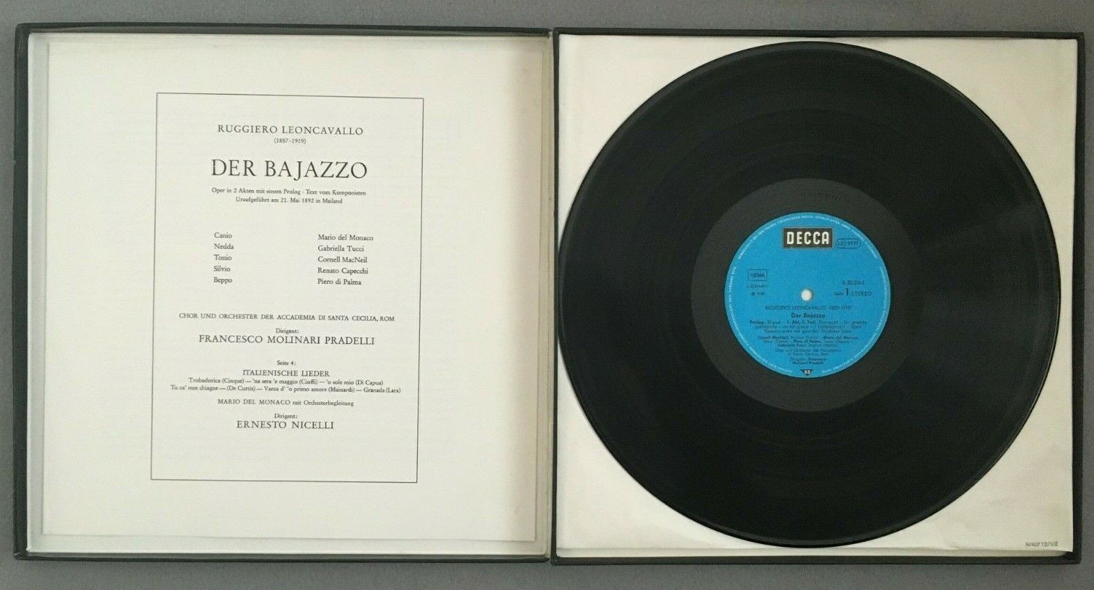 C687 Leoncavallo Bajazzo del Monaco Tucci Pradelli 2LP DECCA 6.35316 DX Stereo