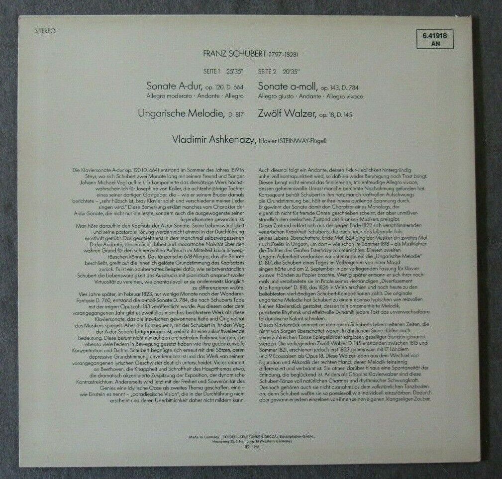 J904 Schubert Sonatas op120 op143, 12 Waltzes Ashkenazy DECCA 6.41918 AN Stereo