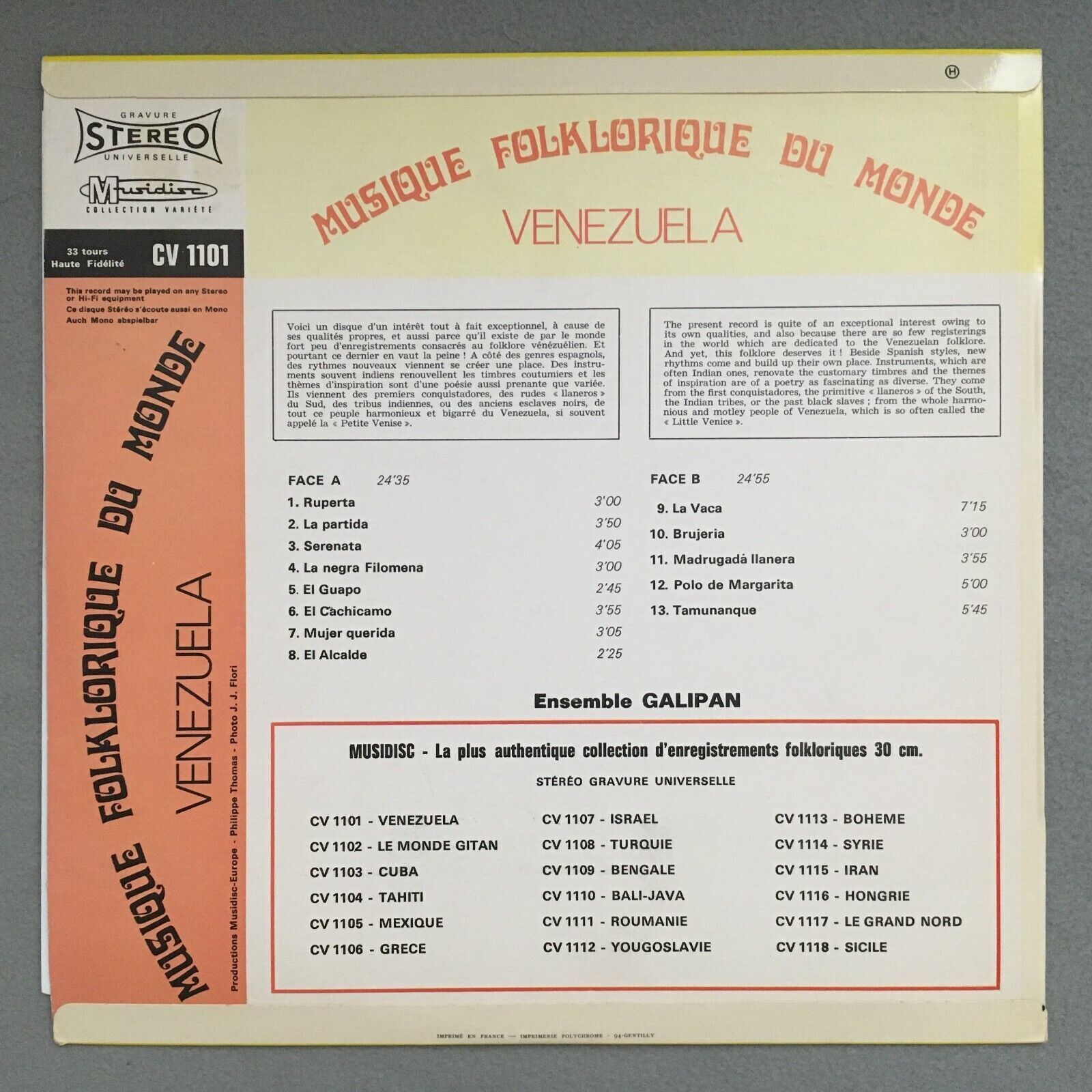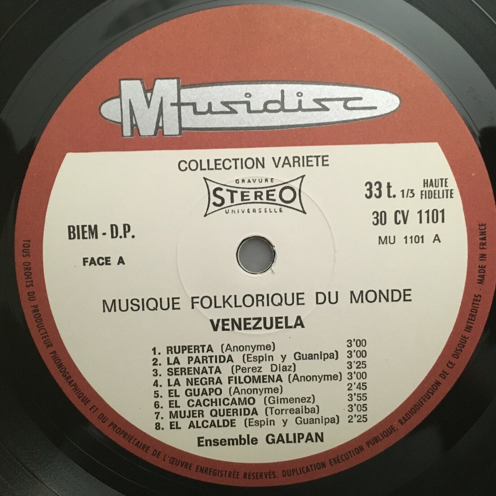 J913 Music of Venezuela Ensemble Galipan Musidisc 30 CV 1101 Stereo