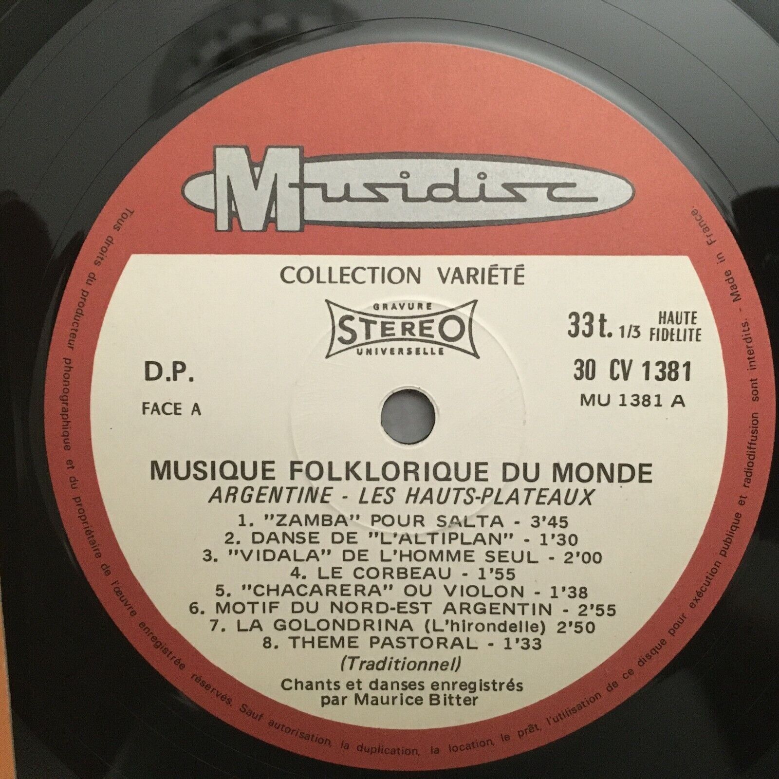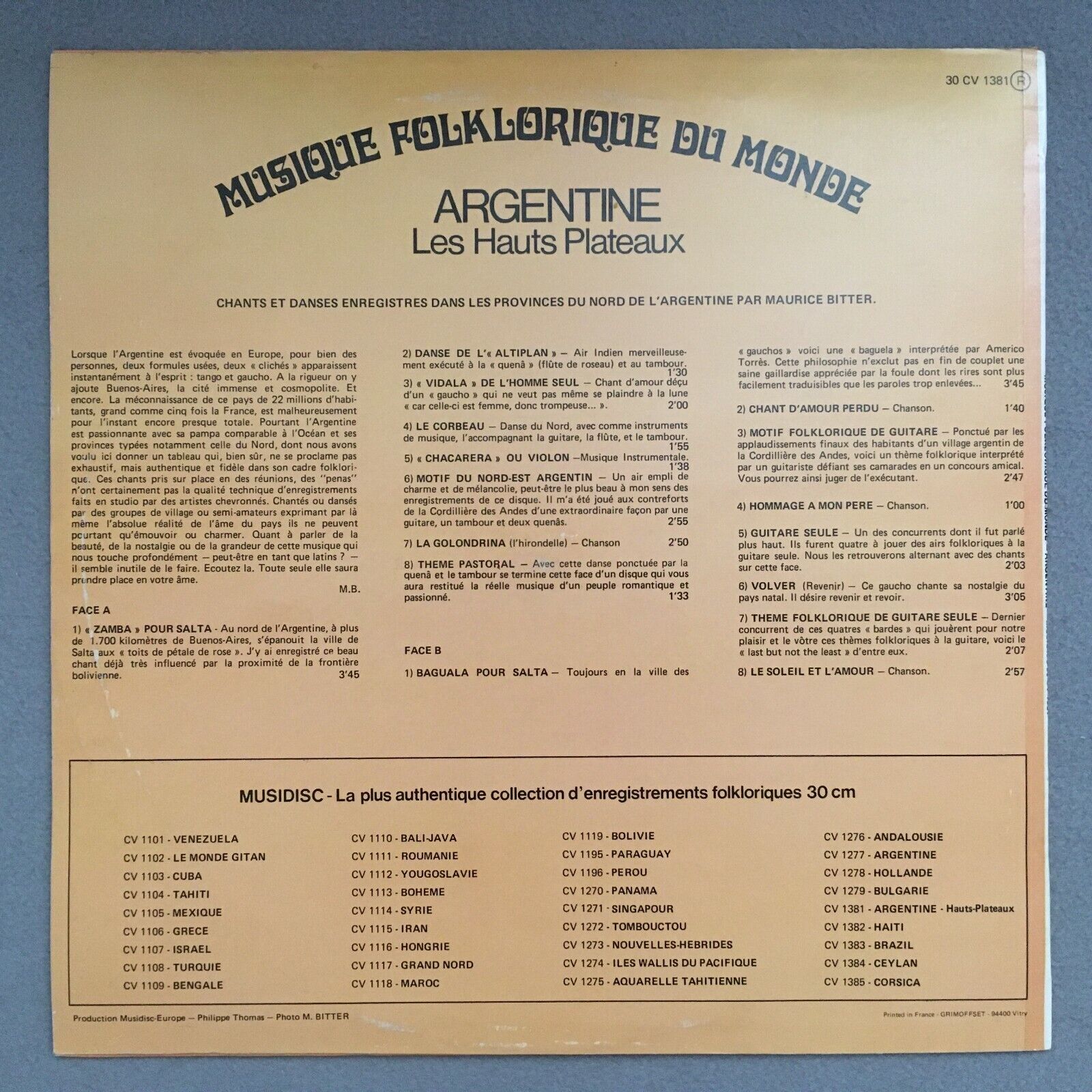 J921 Argentine Music Les Hauts Plateaux Bitter Musidisc 30 CV 1381 Stereo
