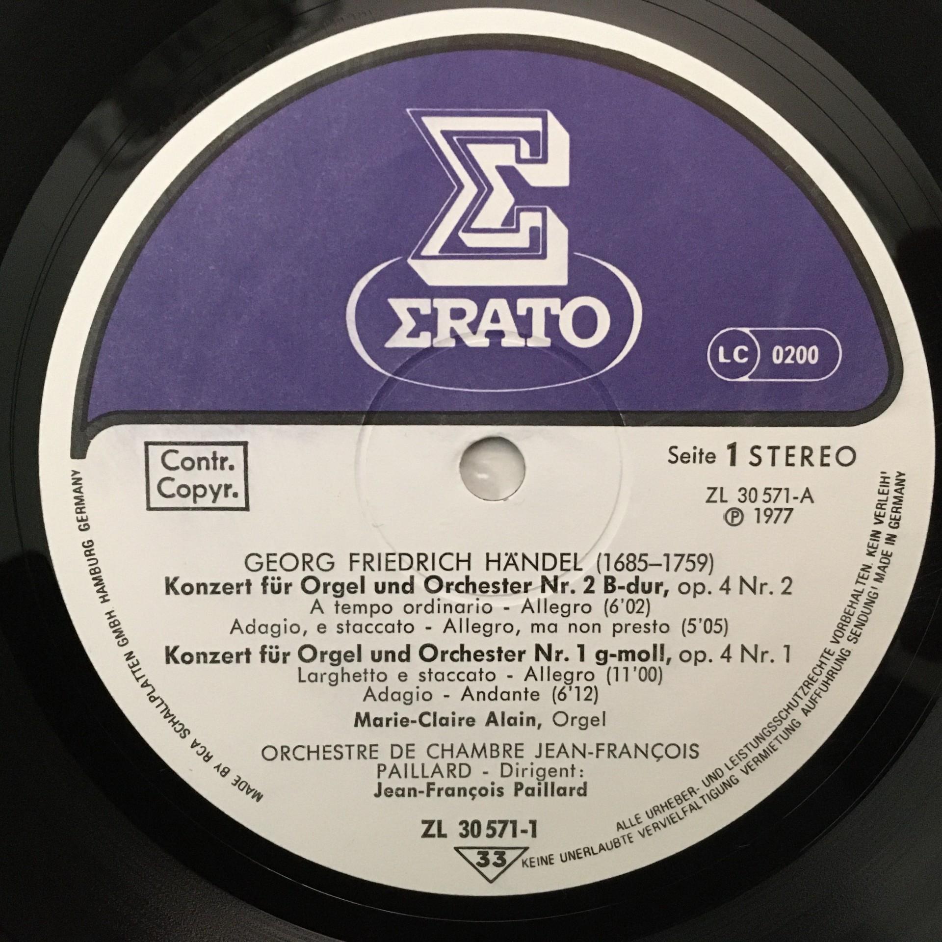 C705 Handel Complete Organ Concertos Alain Paillard 4LP Erato ZL 30571 Stereo