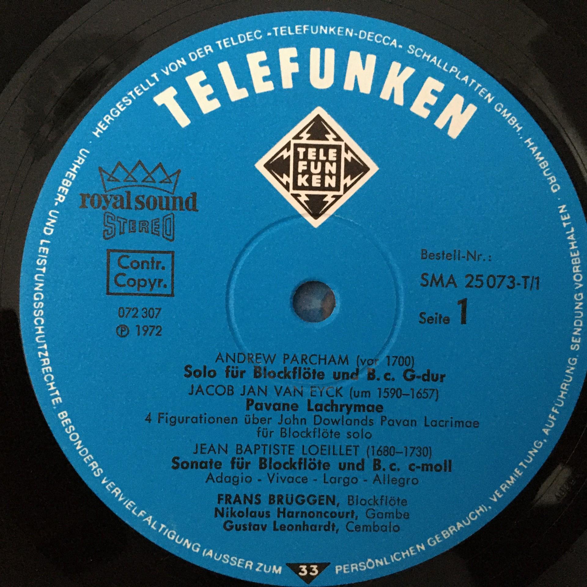 C723 Brüggen 17 Recorders Telemann Couperin 3LP Telefunken SMA 25073-T/1-3 St