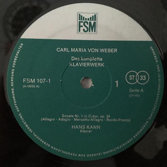 C725 Weber The Complete Piano Work Kann 6LP FSM 107 VXDS Stereo