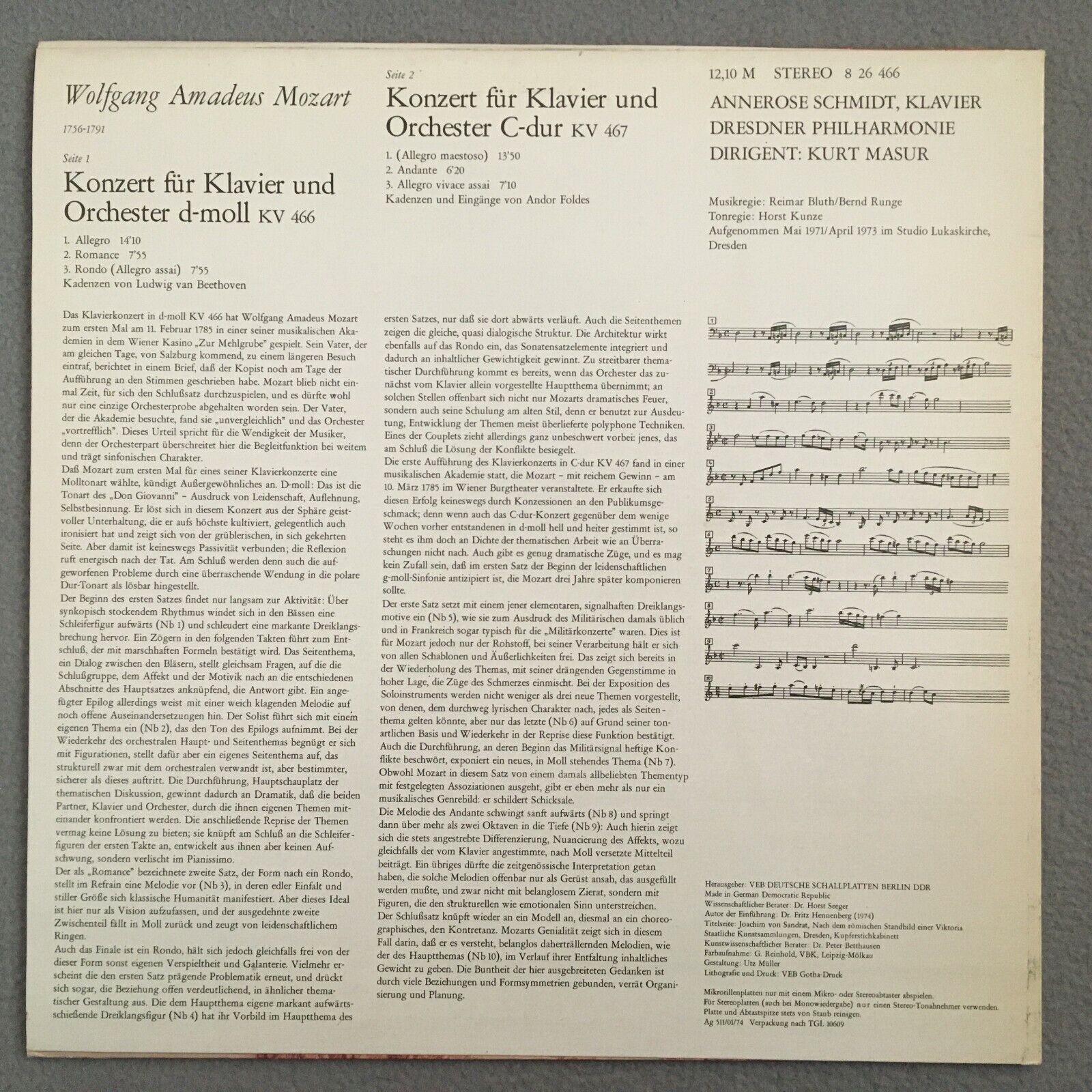 V051 Mozart Piano Concertos Schmidt Masur Eterna 8 26 466 Stereo