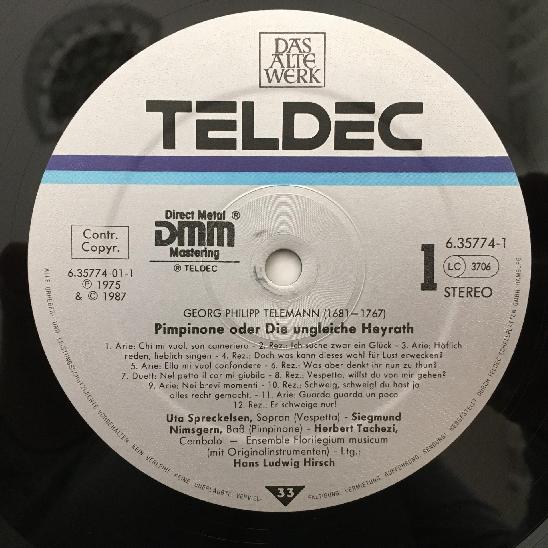 C766 Telemann Pimpinone Harnoncourt 3LP Teldec 6.35774 Digital Stereo