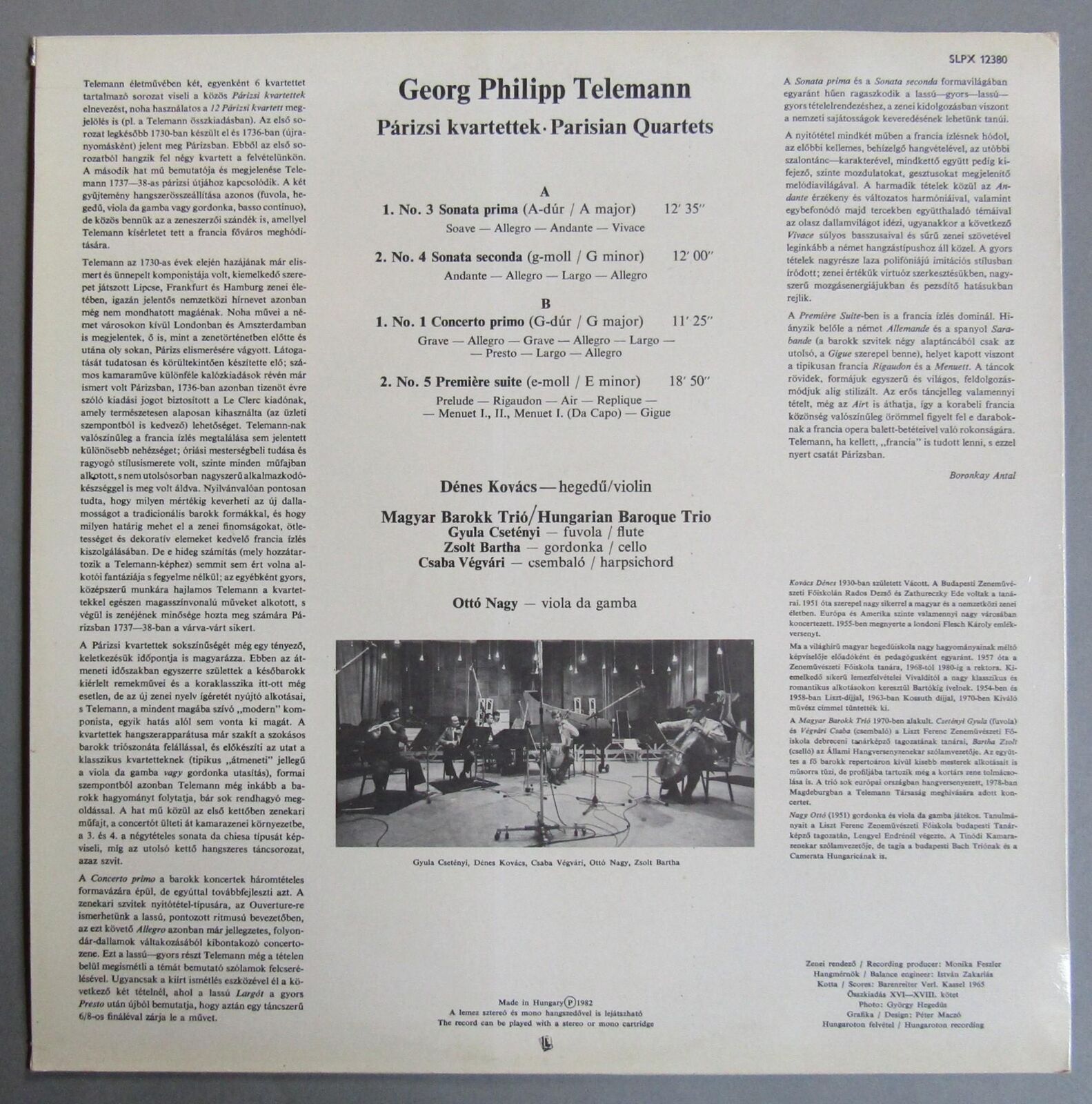 J926 Telemann Parisian Quartets Kovacs Nagy Hungaroton SLPX 12 380 Stereo
