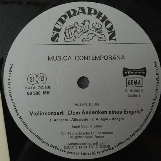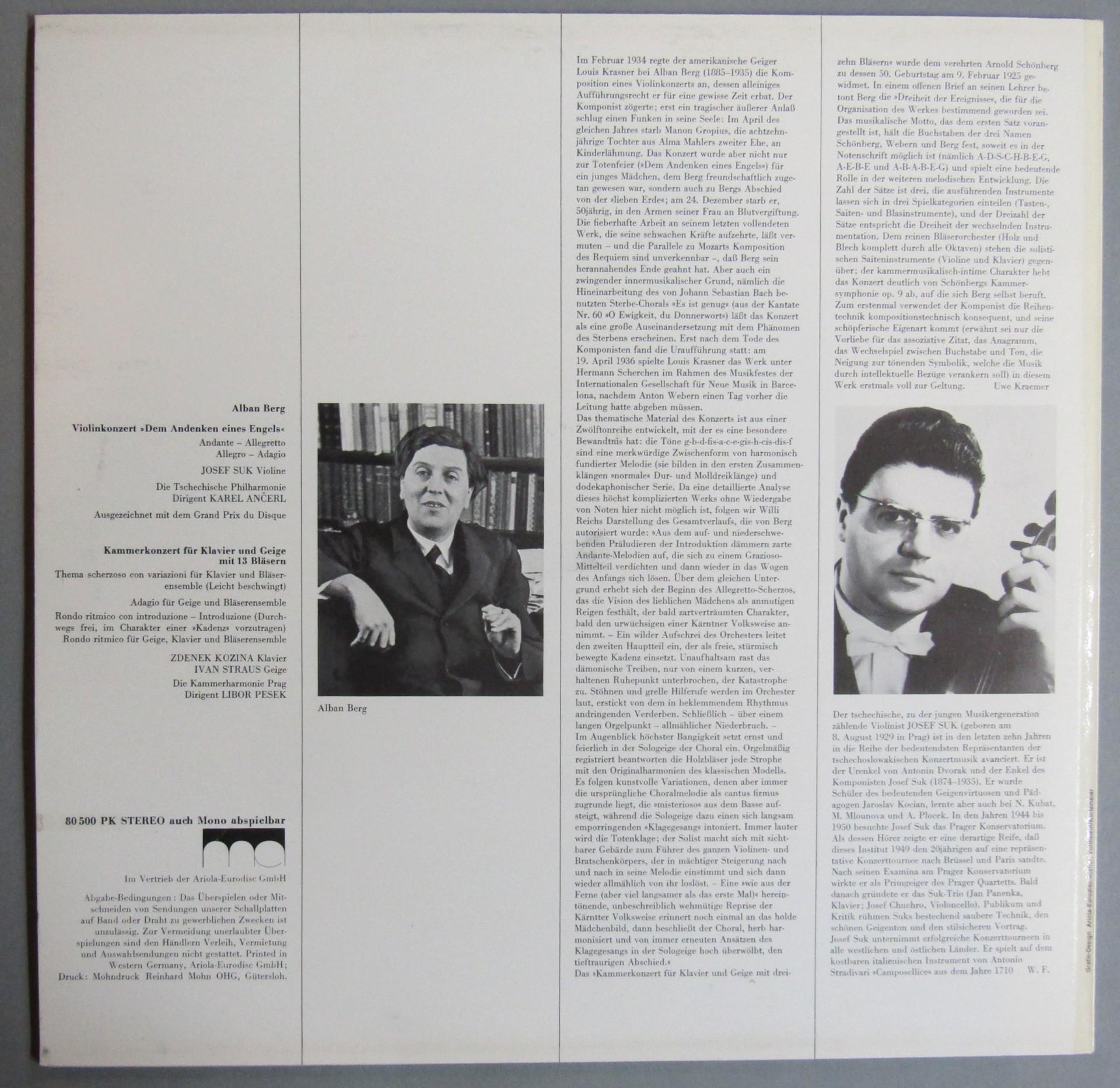 J935 Berg Violin Concerto Suk Ancerl Chamber Concerto Supraphon 80 500 PK Ster