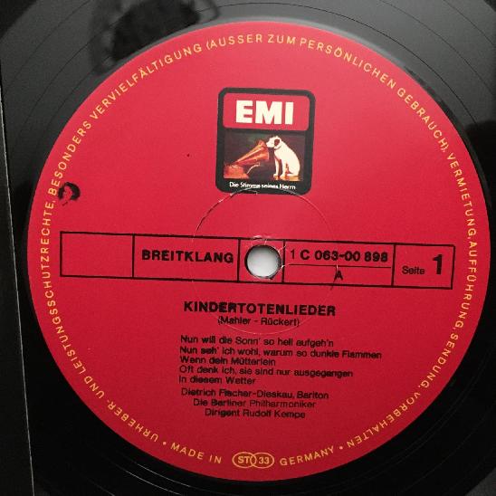 P001 Mahler Kindertotenlieder Fischer-Dieskau Kempe EMI 1 C 063-00898 Breitklang
