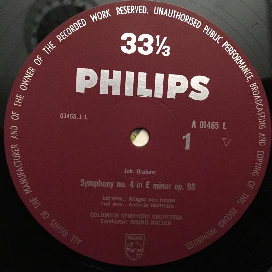 P003 Brahms Symphony No.4 Walter Philips A 01465 L Stereo