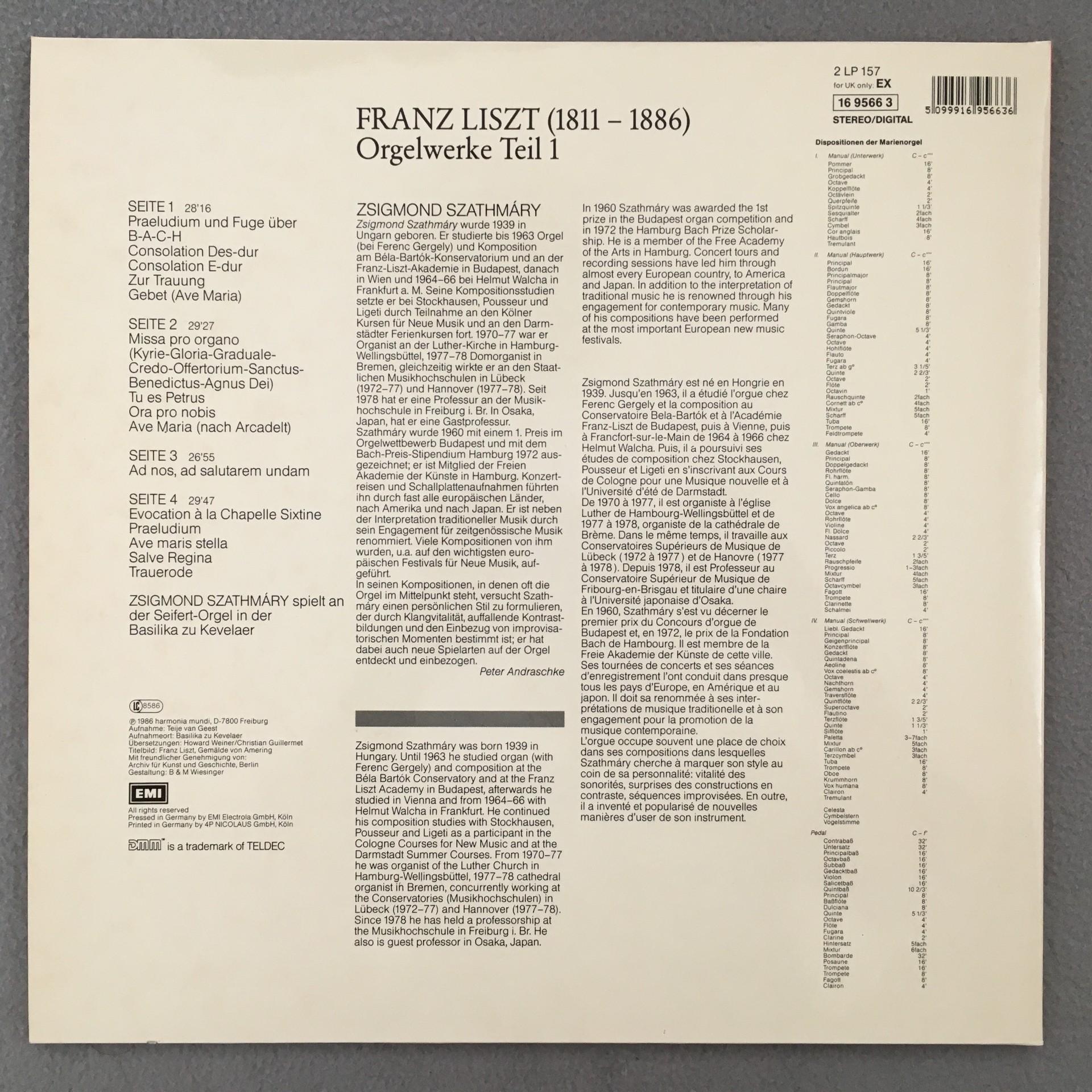 P010 Liszt Organ Works Vol. 1 Szathmary 2LP EMI 157 16 9566 3 Digital Stereo