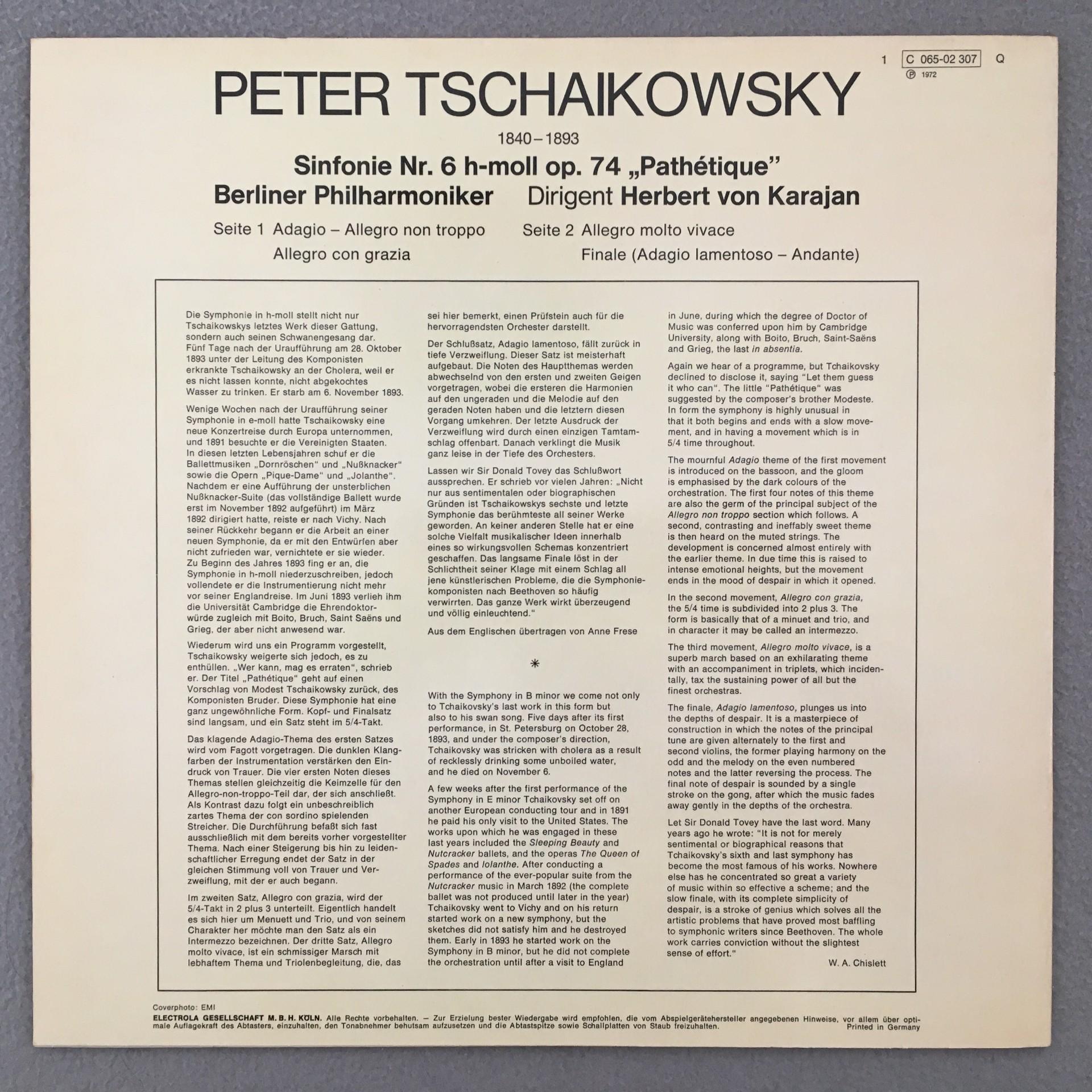 P013 Tchaikovsky Symphony No.6 Karajan BPO EMI 1 C 065-02 307 Q Quadro