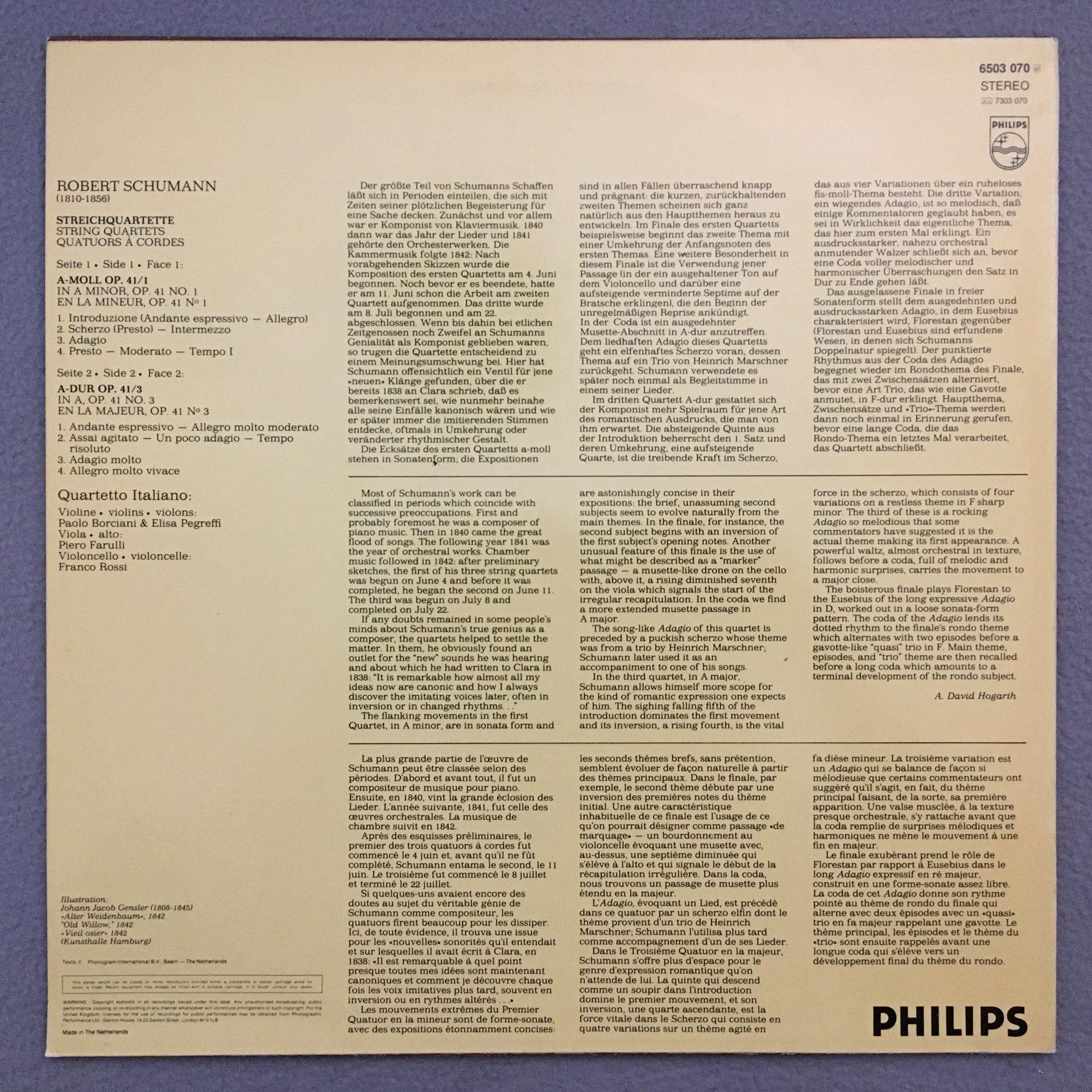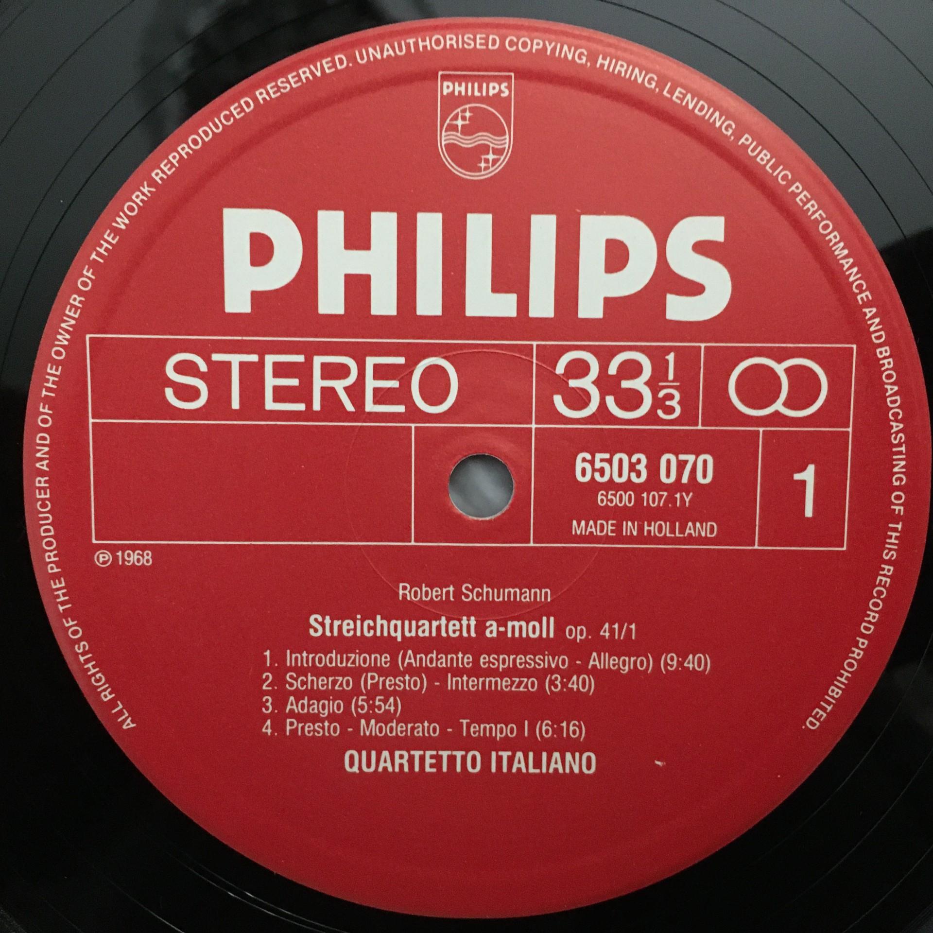 P038 Schumann String Quartets Quartetto Italiano Philips 6503 070 Stereo