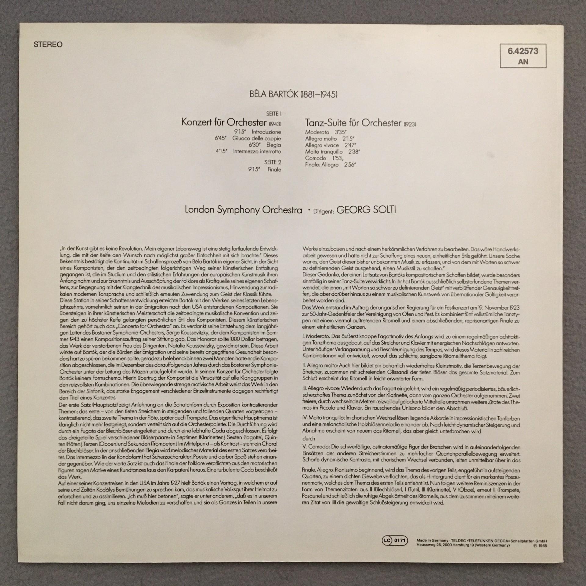 P043 Bartok Concerto Dance Suite Solti LSO DECCA 6.42573 AN Stereo