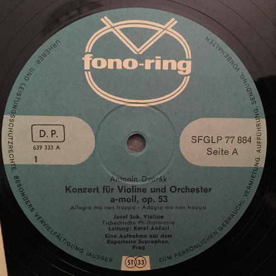 P049 Dvorak Violin Concerto Romance Suk Ancerl Christophorus SFGLP 77 884 Stereo