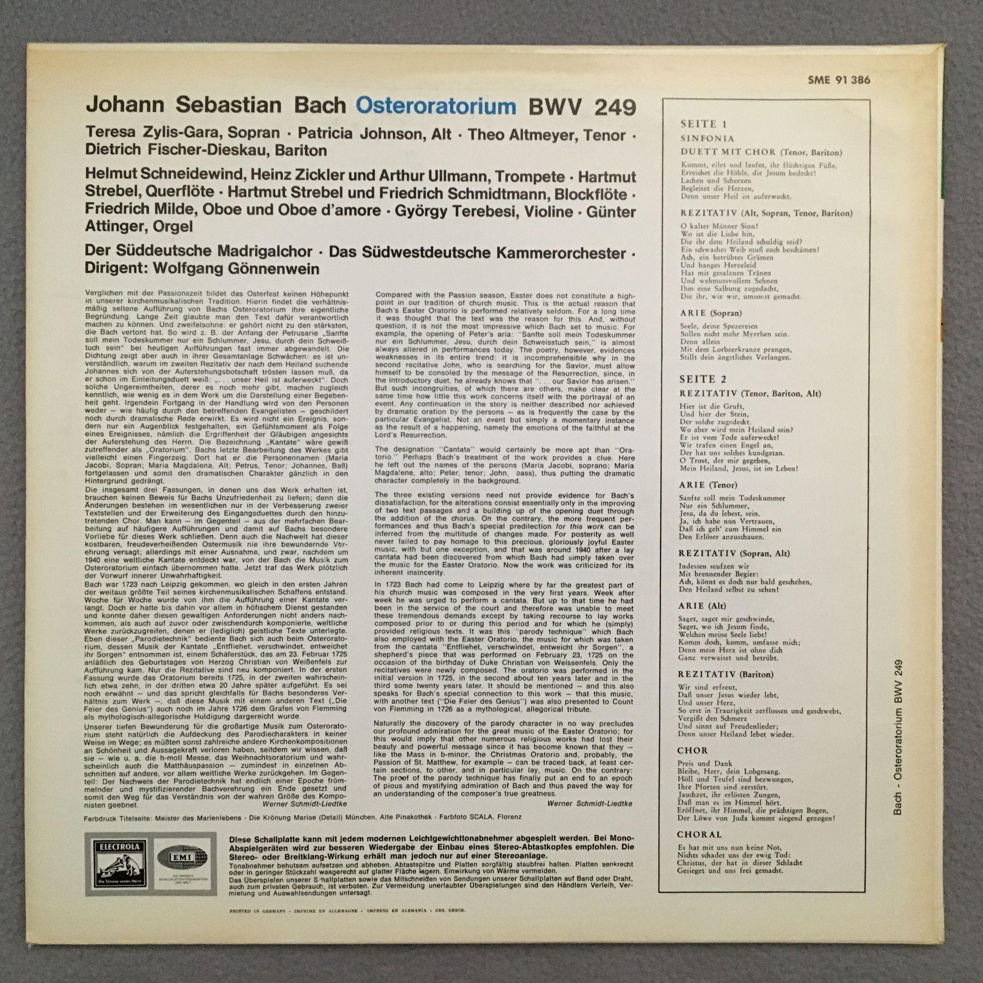 P051 Bach Easter Oratorio Fischer-Dieskau Electrola w/g SME 91 386 Stereo