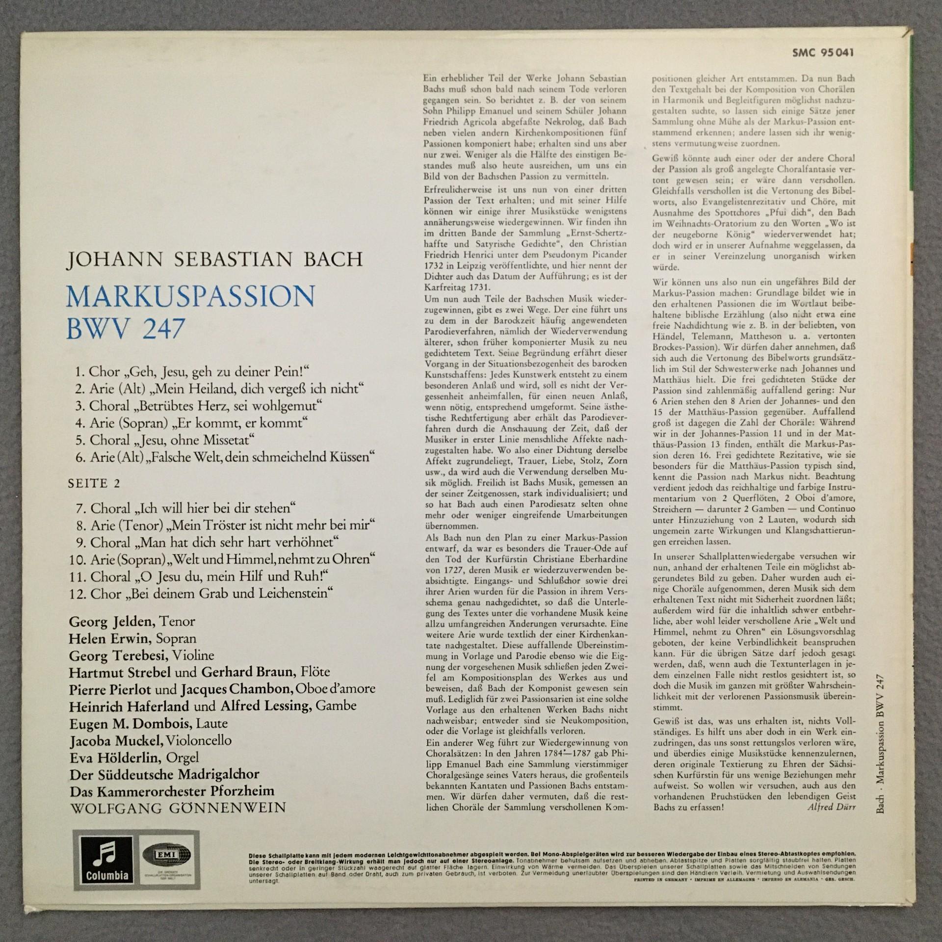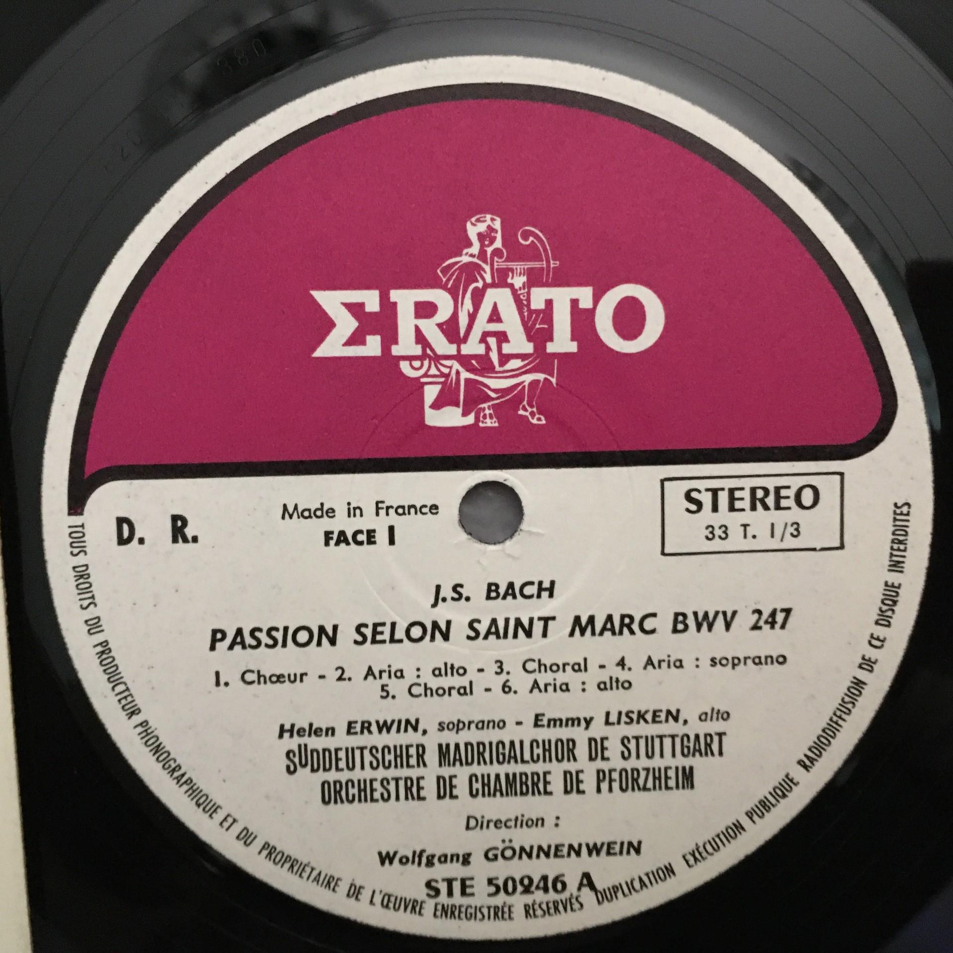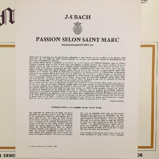 P053 Bach Markus Passion Erwin Lisken Gönnenwein Erato SMC 95 041 Stereo