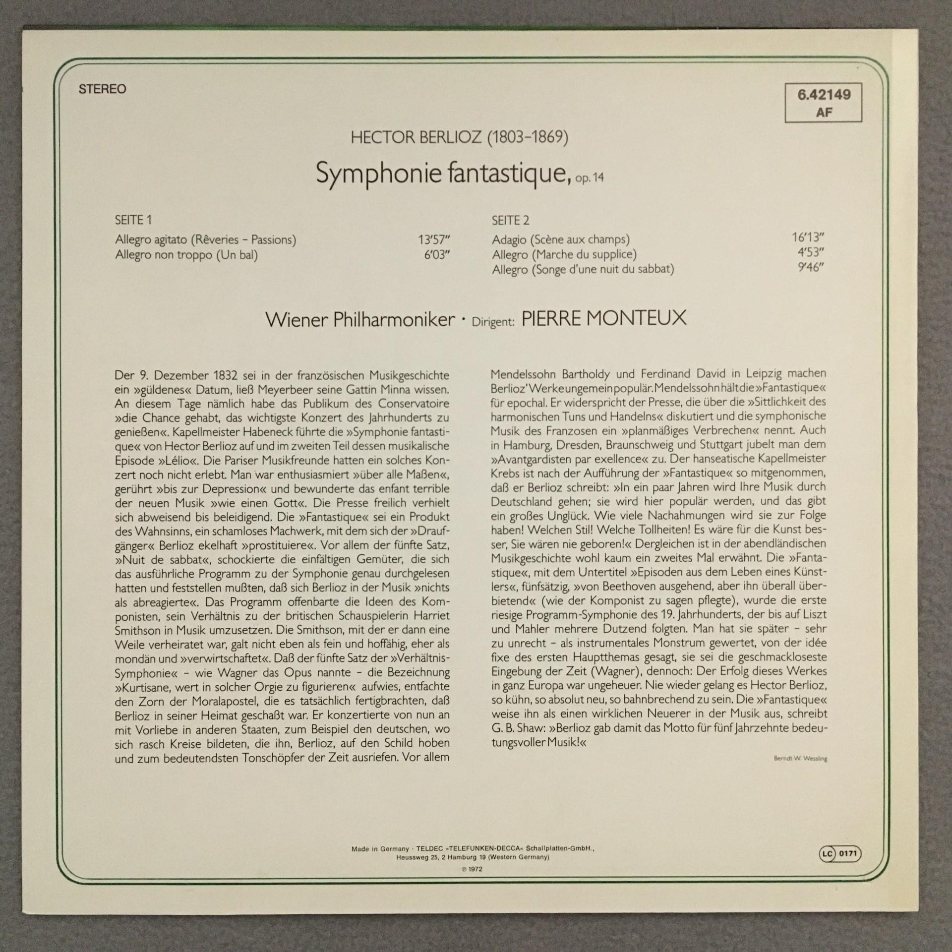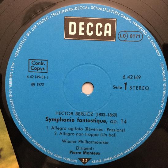 P071 Berlioz Symphony Fantastic Monteux VPO DECCA 6.42149 AF Stereo