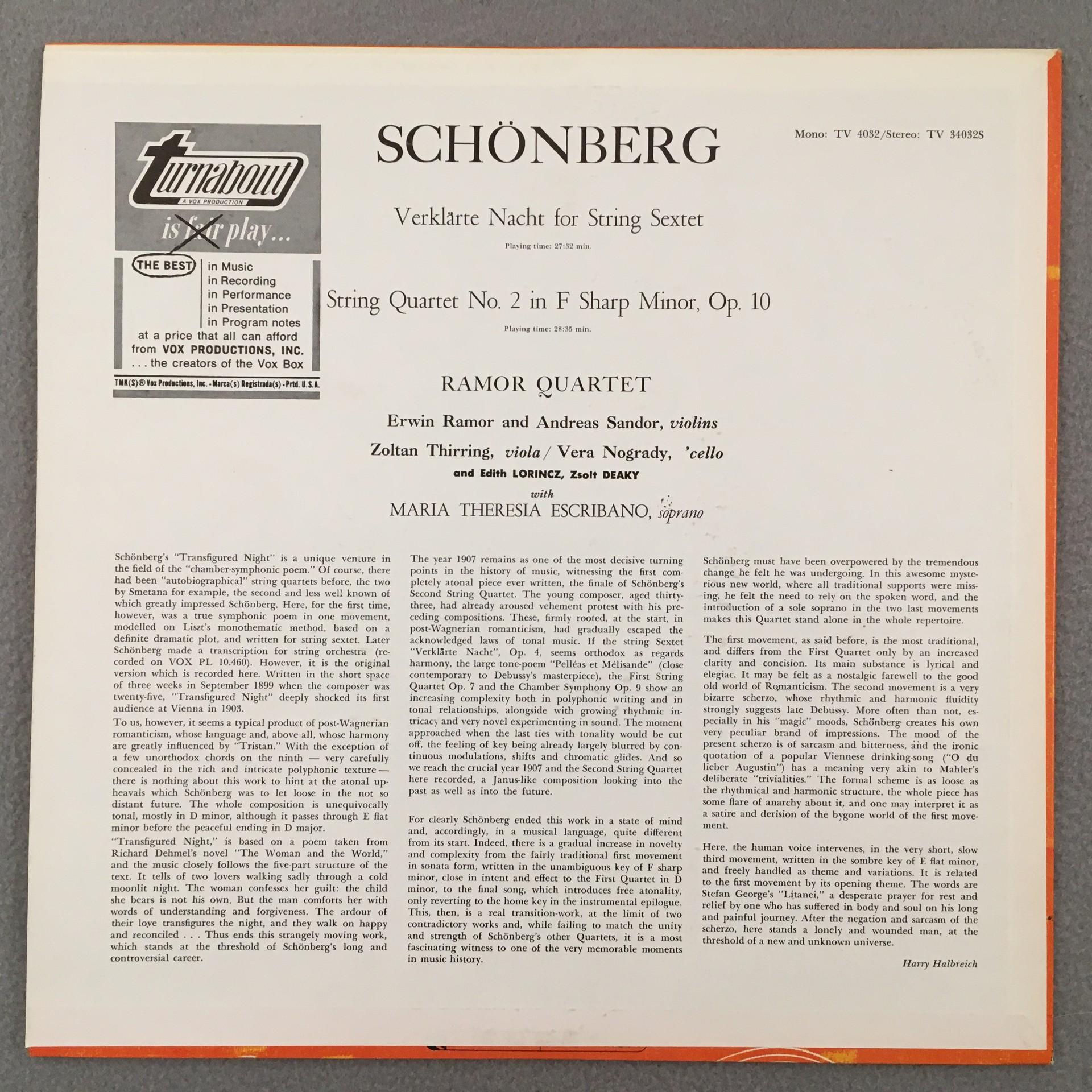 P048 Schönberg Verklärte Nacht Ramor Quartet Escribano Turnabout TV 34032S St