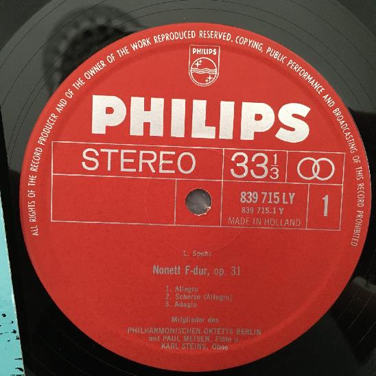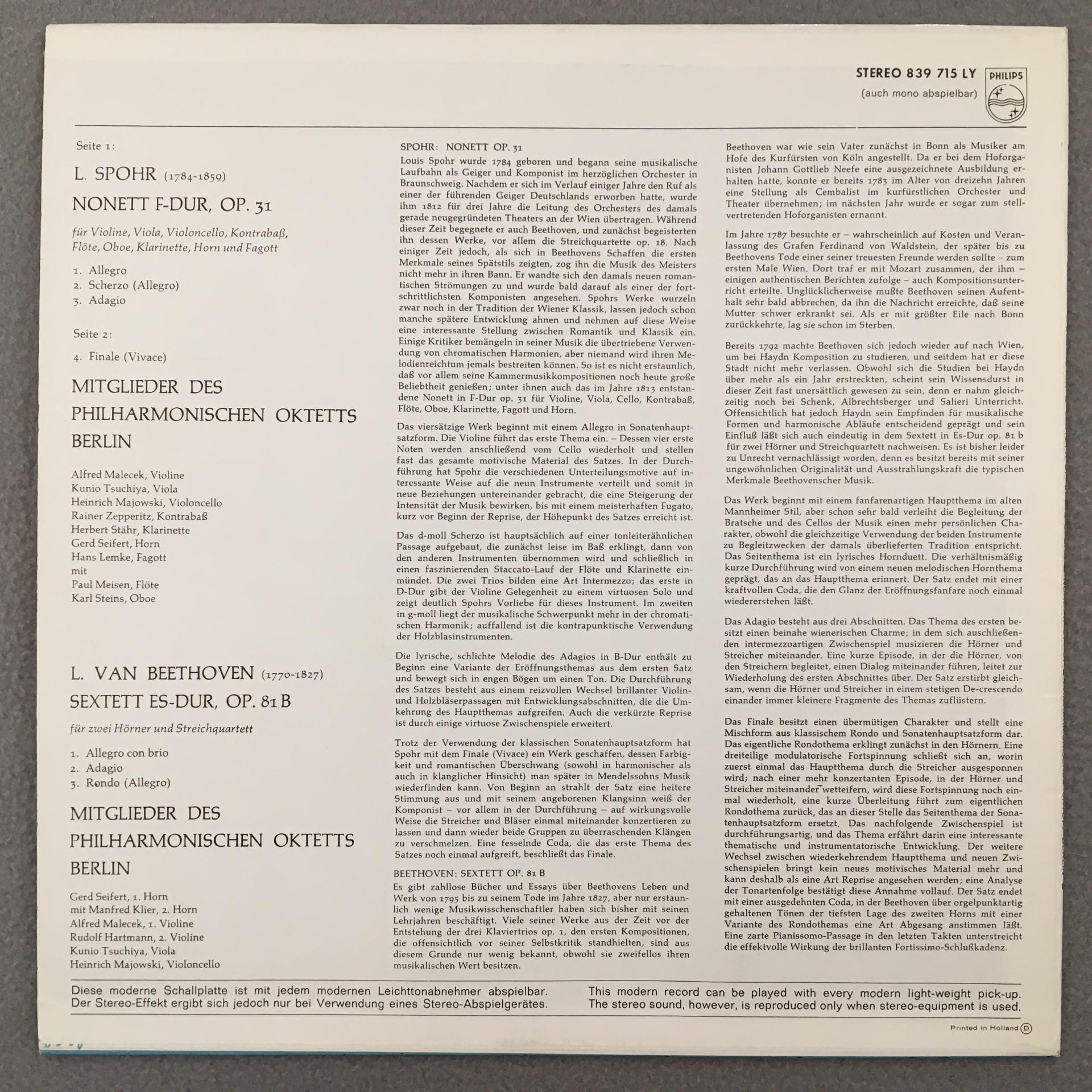 P040 Beethoven Sextet Spohr Nonet Octet BPO Philips 839 415 LY Stereo