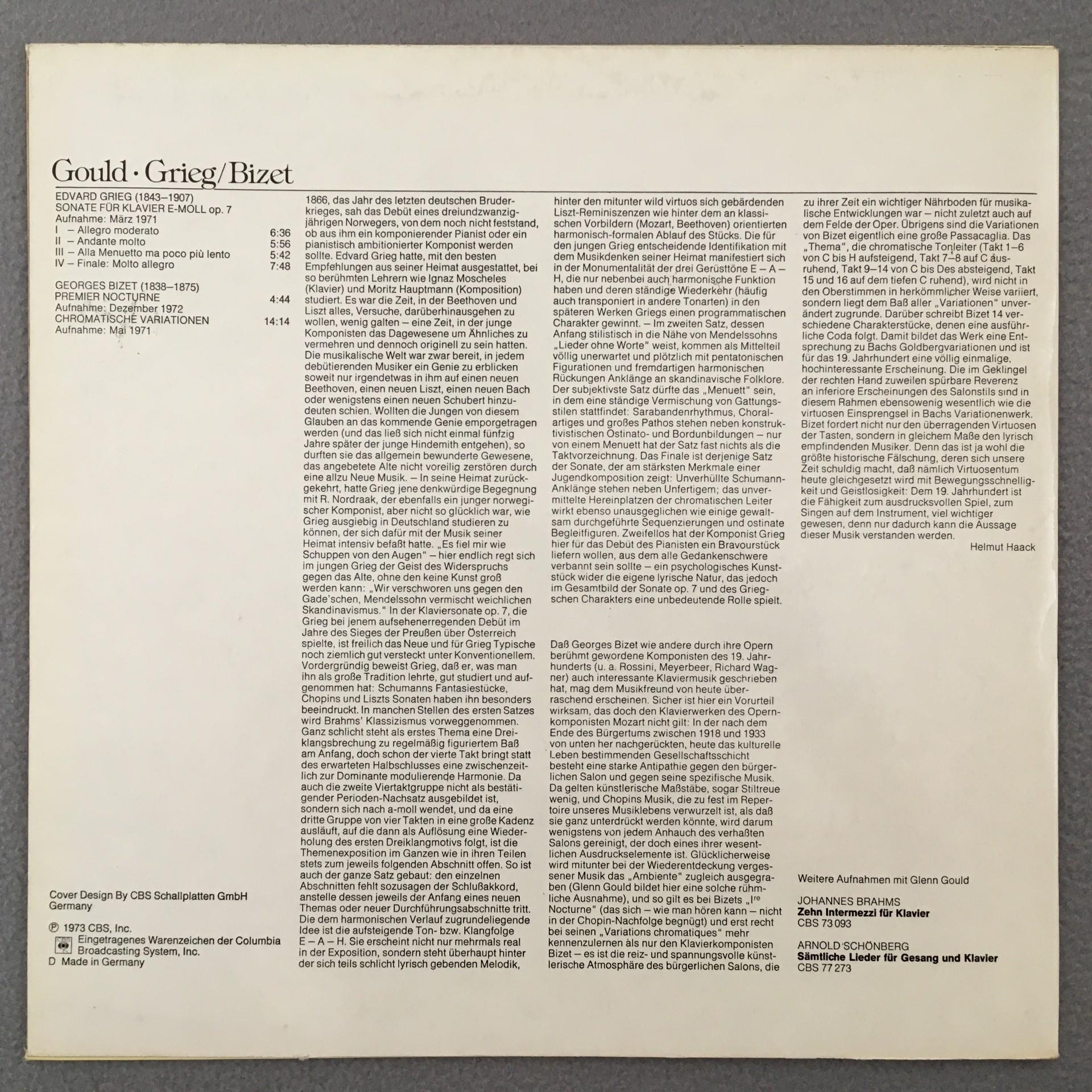 P032 Grieg Sonata Bizet Nocturne Variations Gould Piano CBS 73 178 Stereo