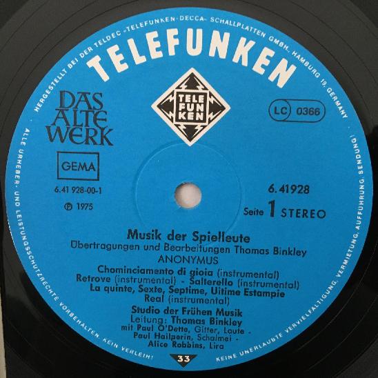 P118 Music of the Minstrels Levitt Binkley Telefunken 6.41928 AW Stereo