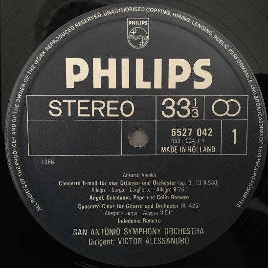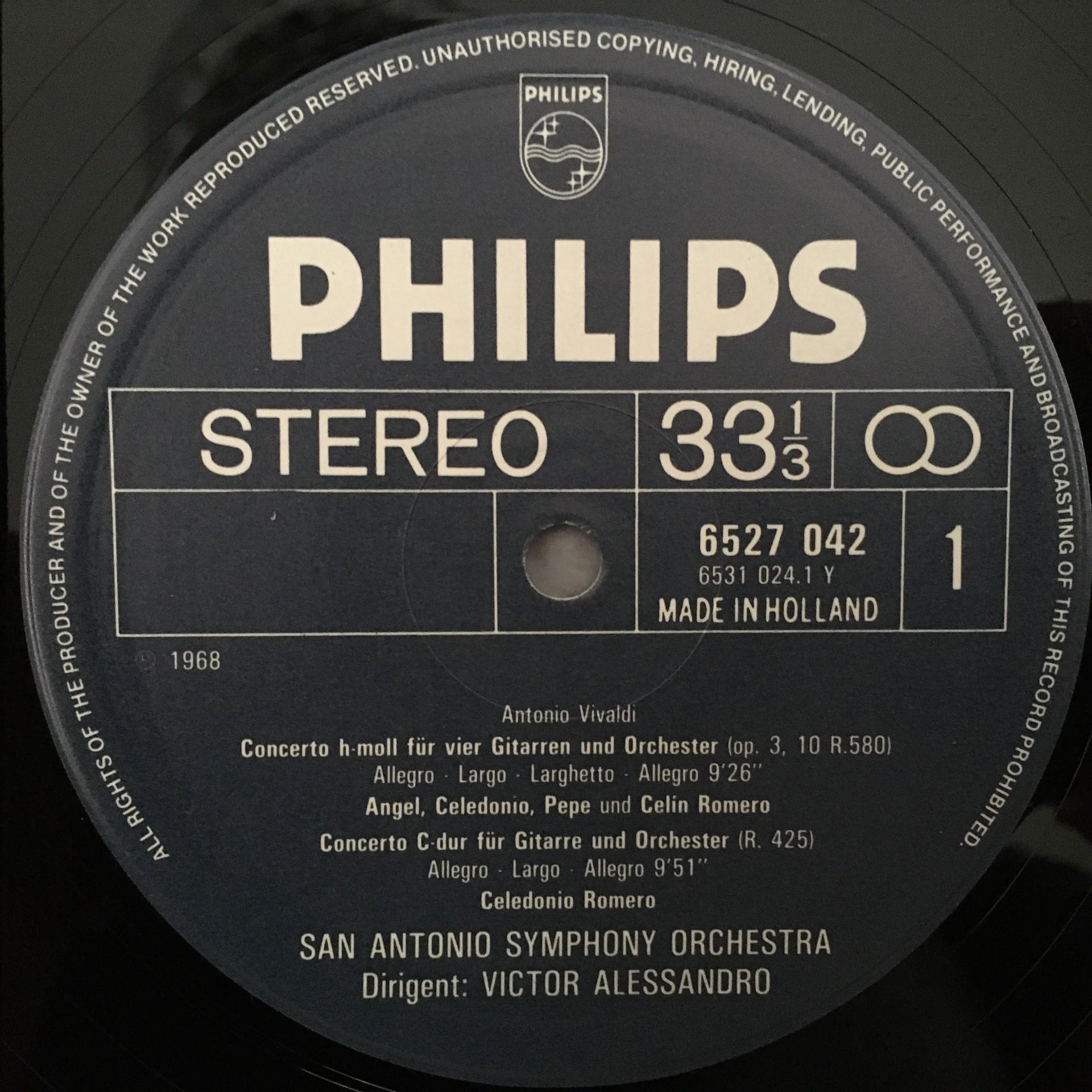 P131 Vivaldi Guitar Concertos Los Romeros Philips 6527 042 Stereo