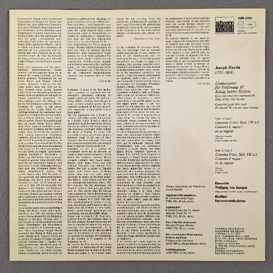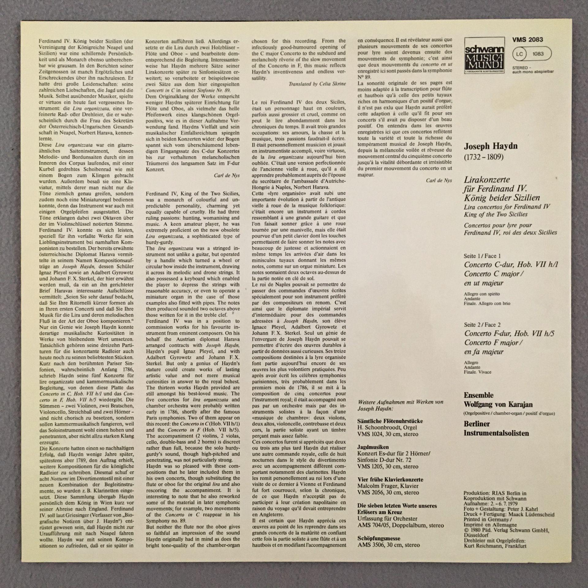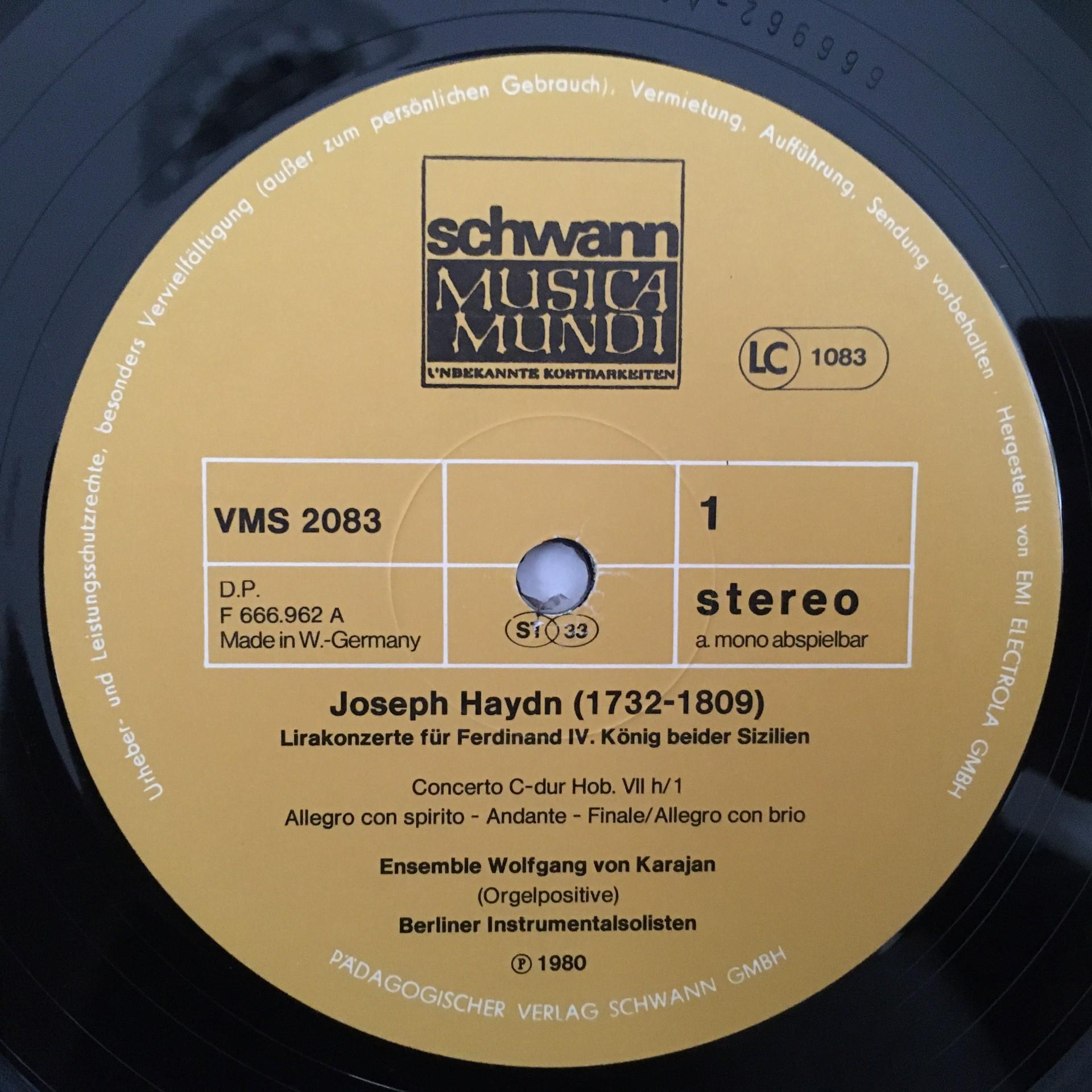 P138 Haydn Lira Concertos Karajan Ensemble Solists BPO Schwann VMS 2083 Stereo