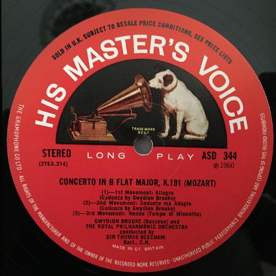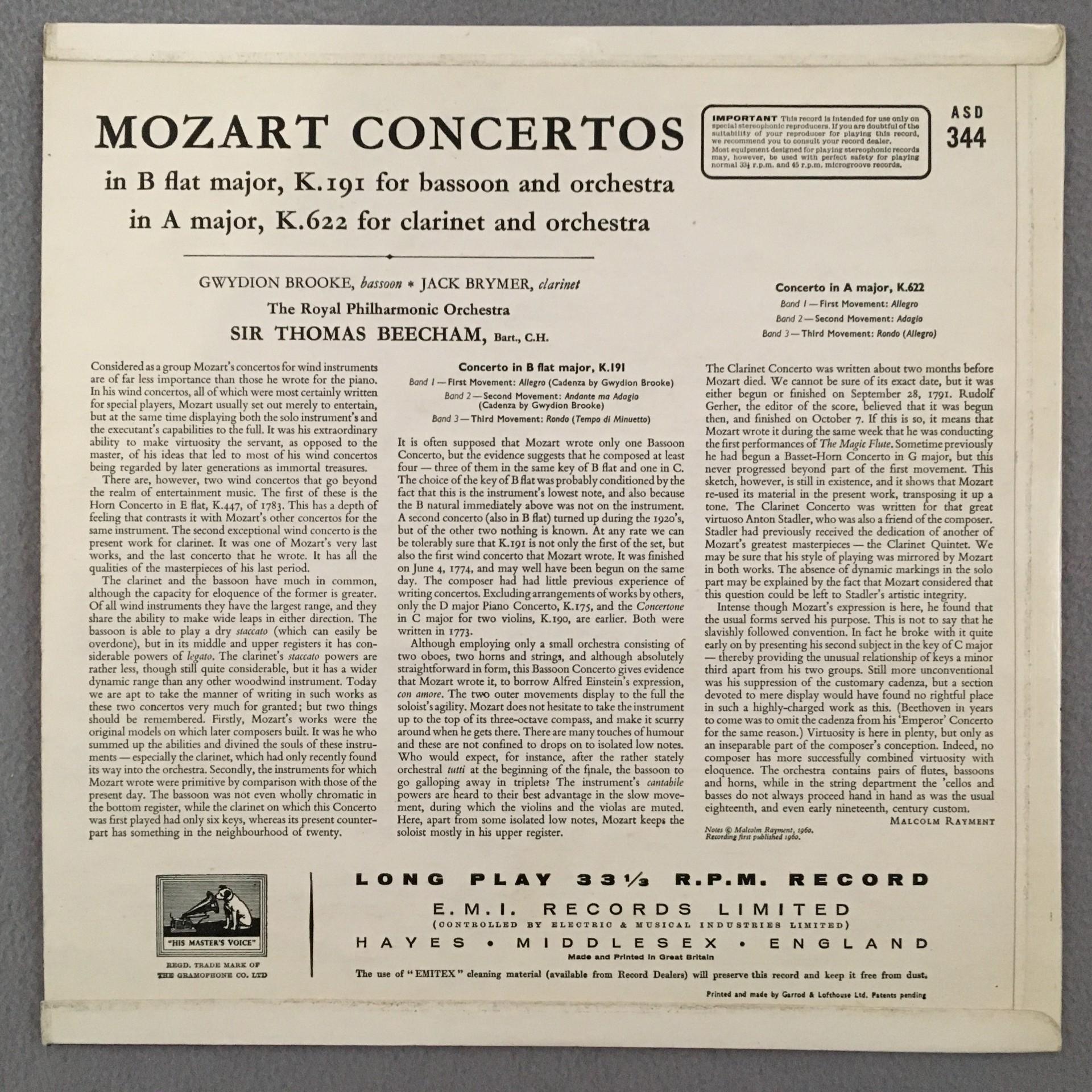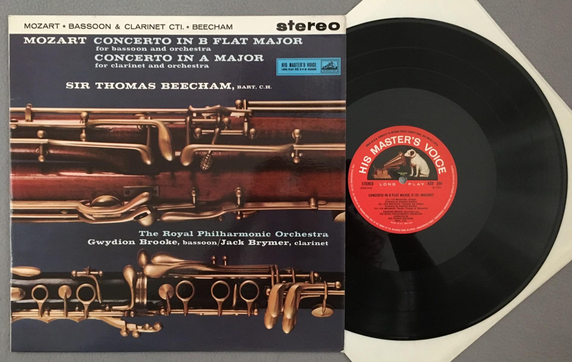 P141 Mozart Concertos Brooke Bassoon Brymer Clarinet Beecham HMV ASD 344 Stereo
