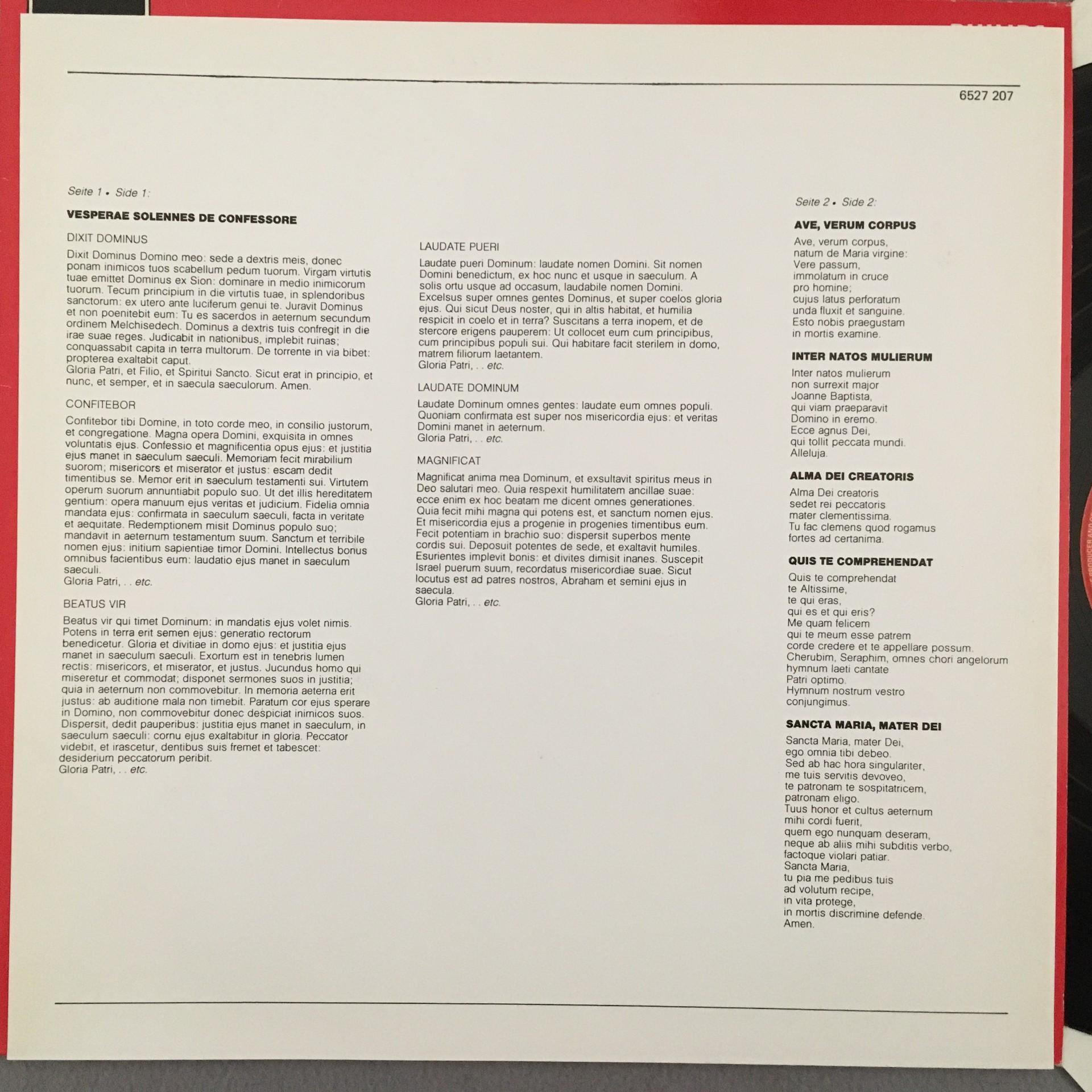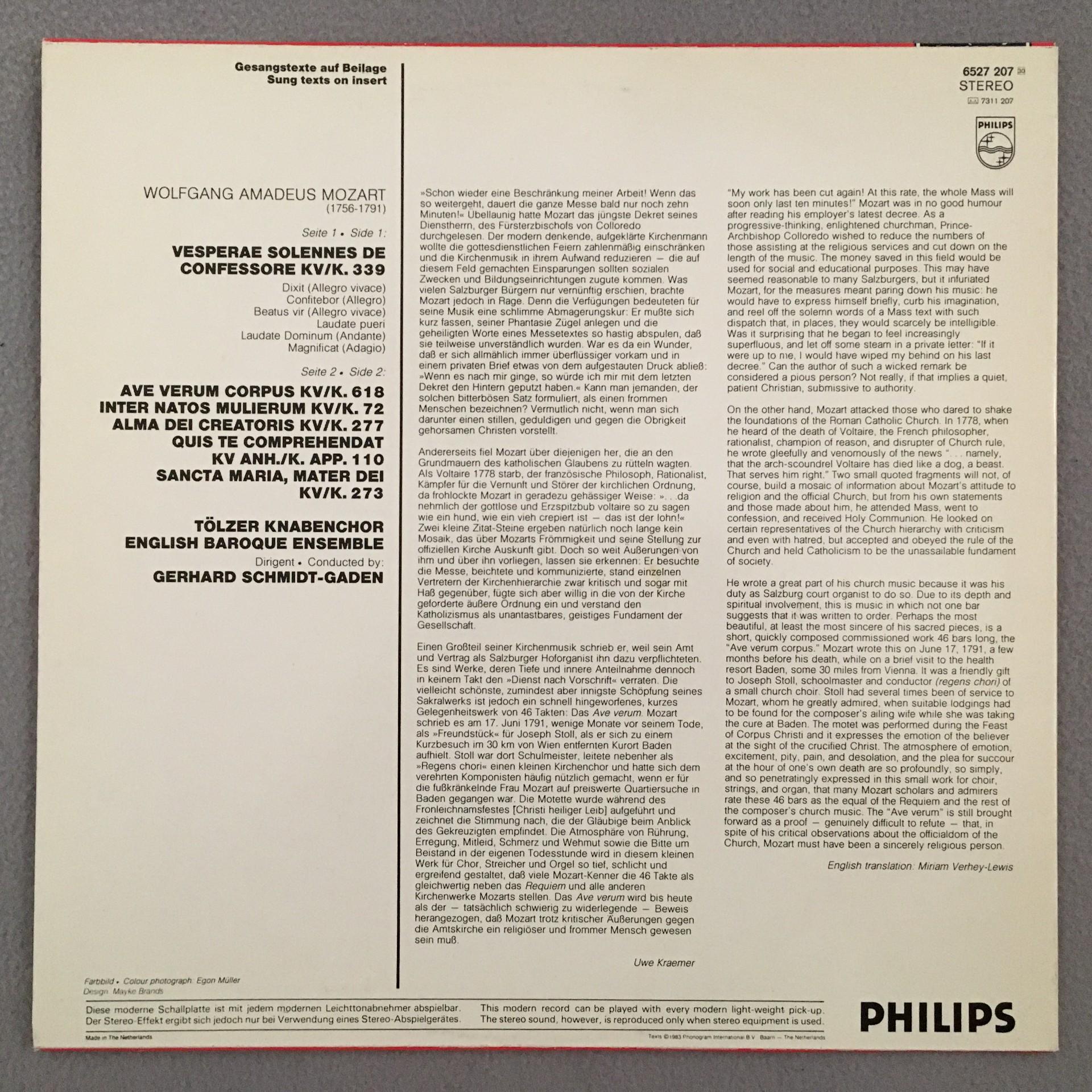P145 Mozart Vesperae Solennes AveVerum Schmidt-Gaden Philips 6527 207 Stereo