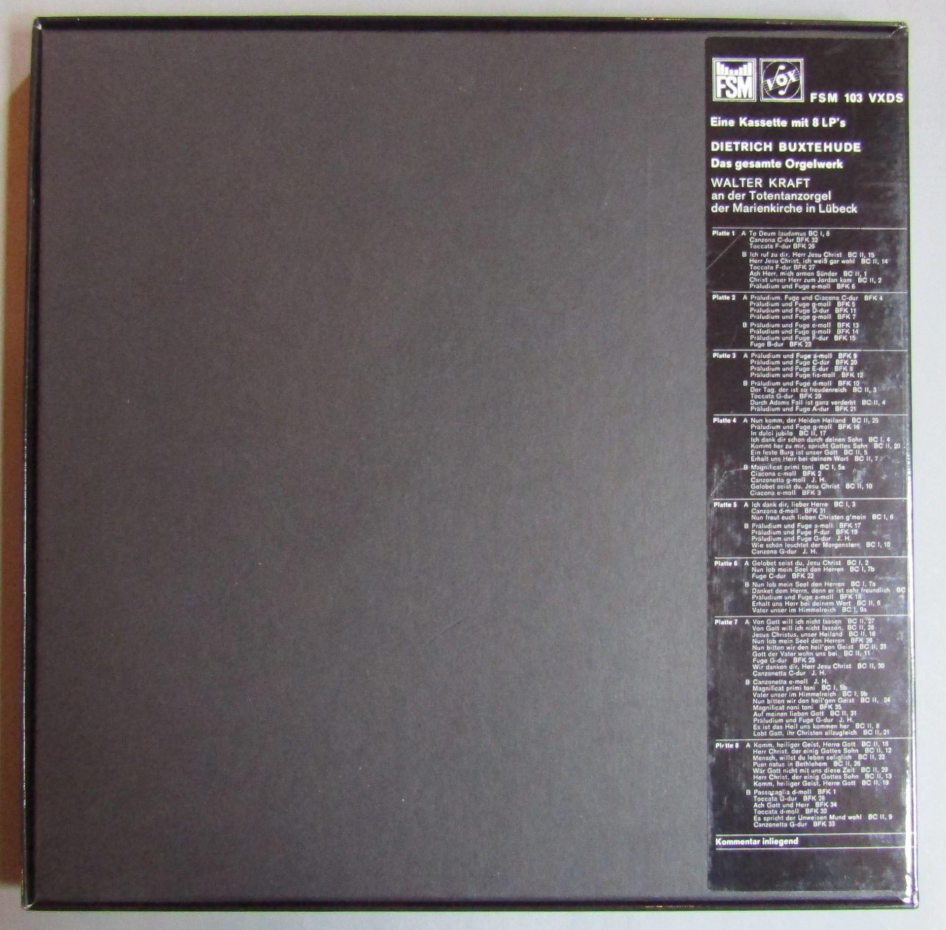 G249 Buxtehude Complete Organ Works Walter Kraft 8LP FSM VOX FSM 103 VXDS Stereo