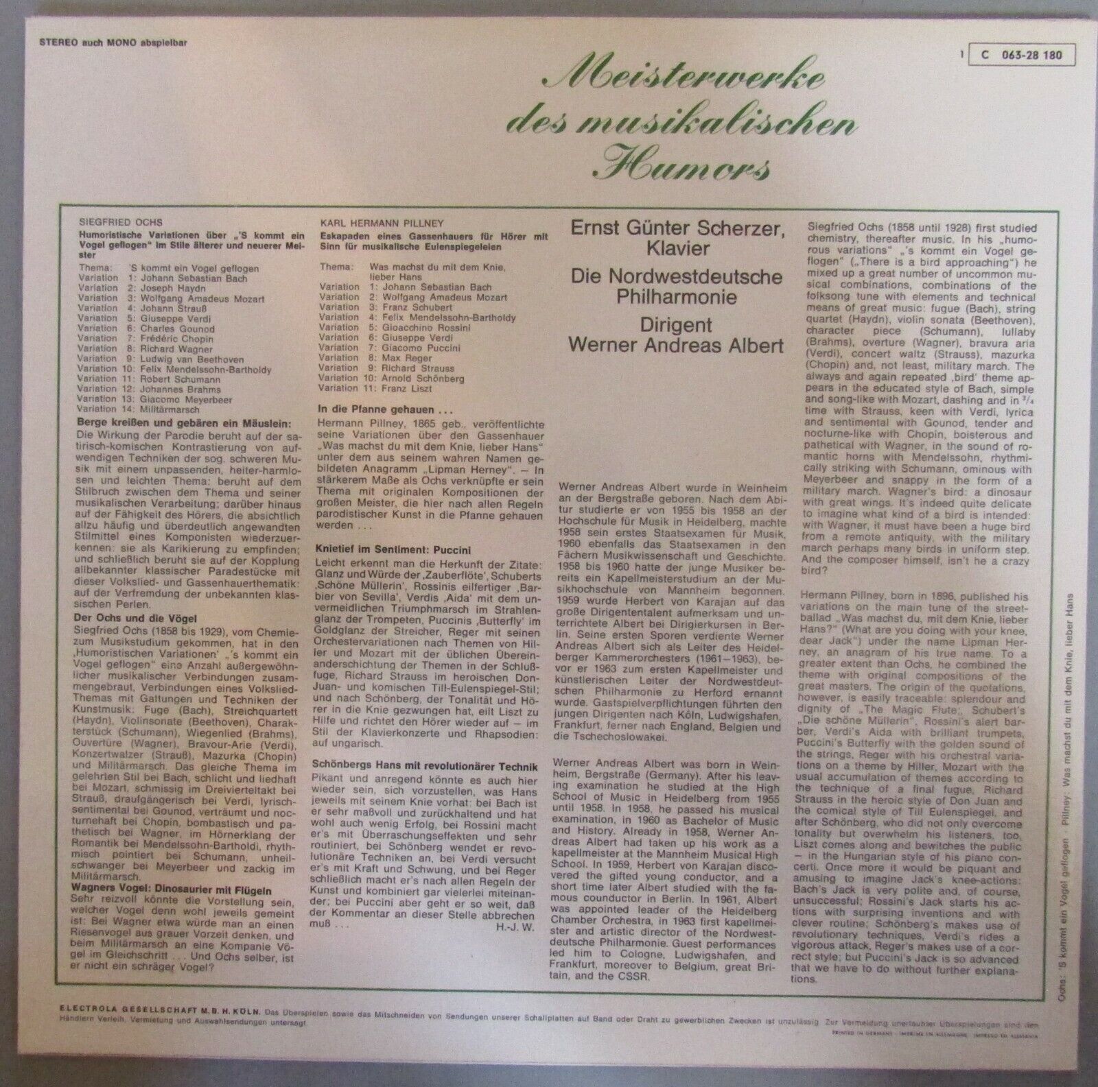 J955 Ochs Variations "´s kommt ein Vogel geflogen" Albert EMI 1 C 063-28 180 Ste