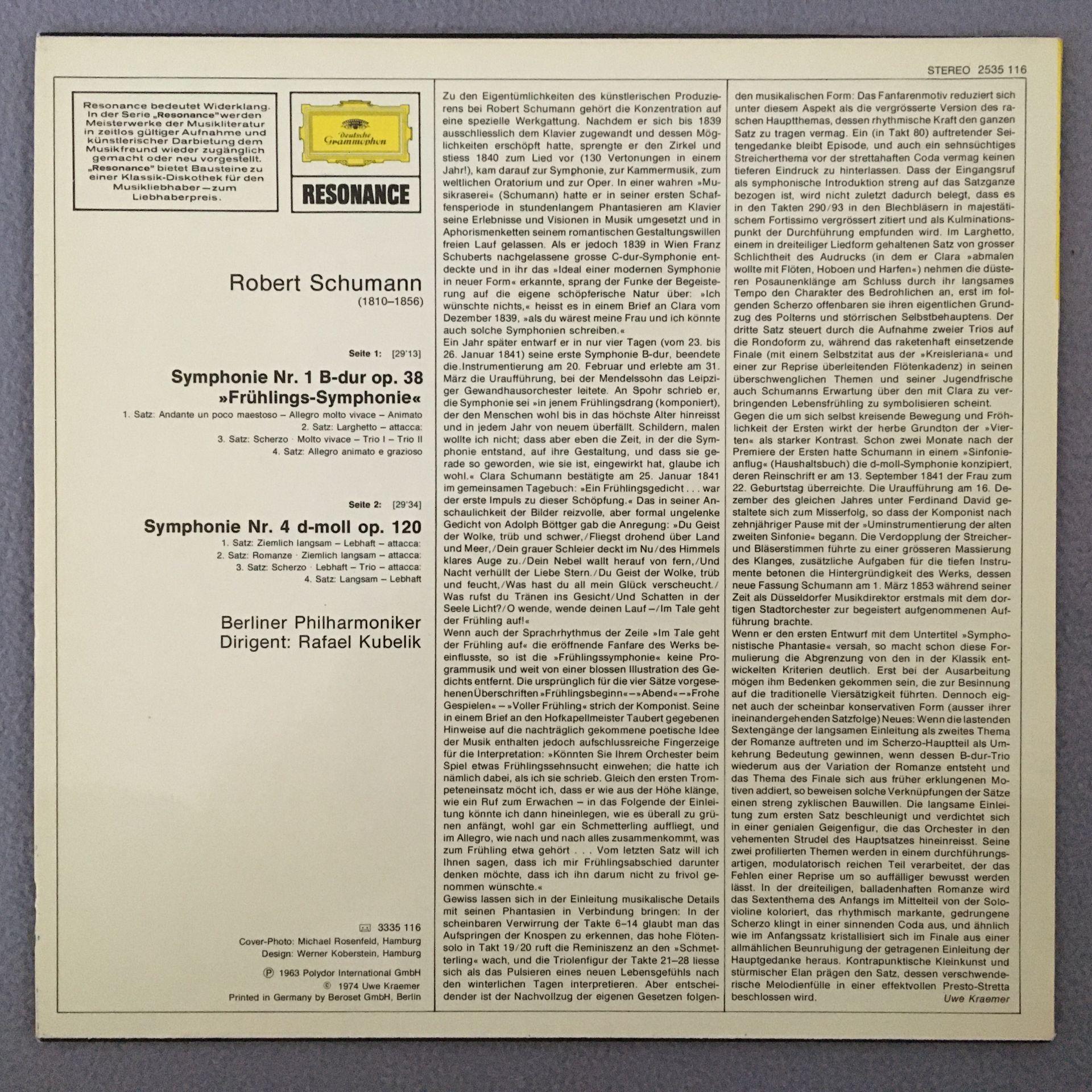 P152 Schumann Symphonies No.1 & No.4 Kubelik BPO DGG 2535 116 Stereo