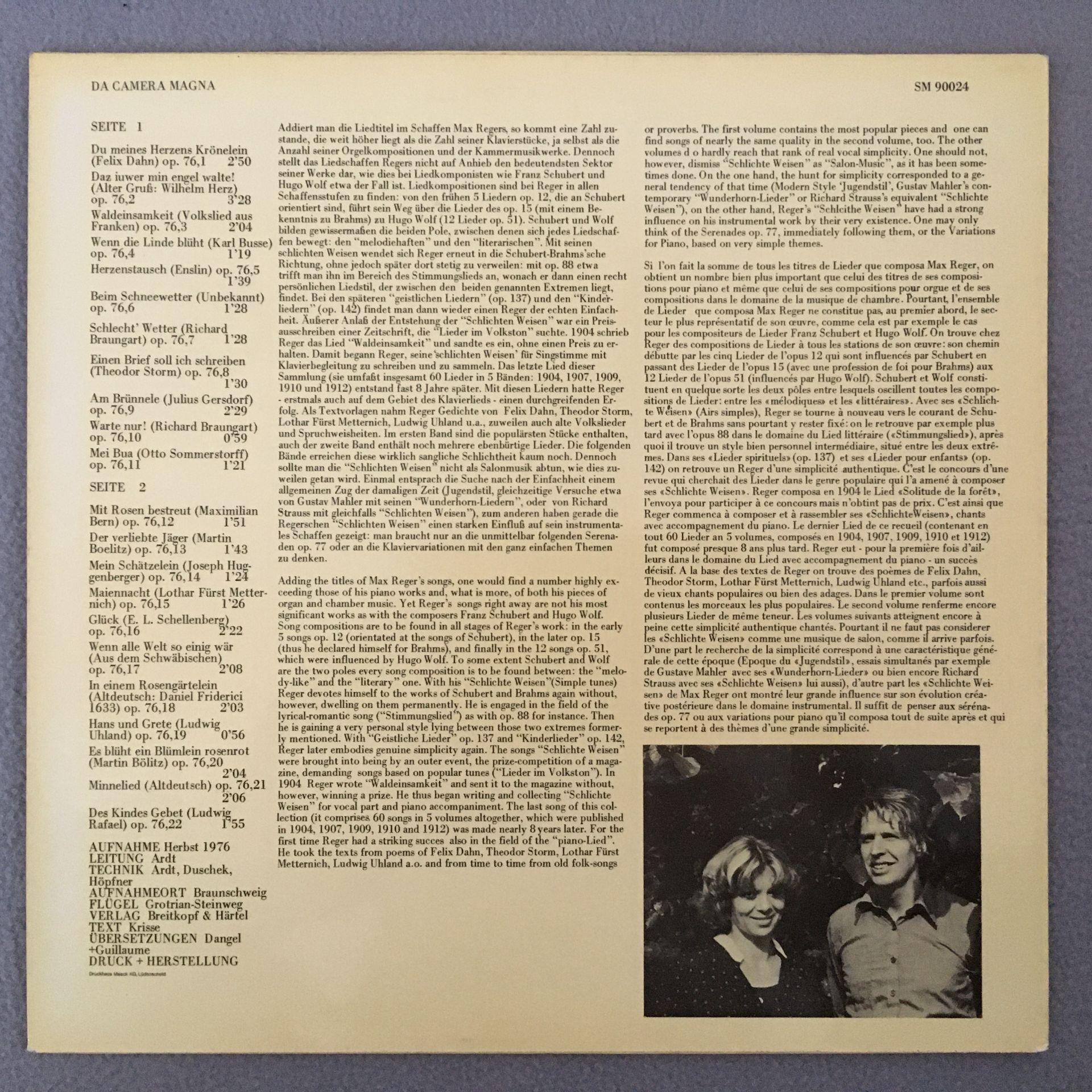 P161 Reger Songs Schwarz Garben Piano Da Camera Magna SM 90024
