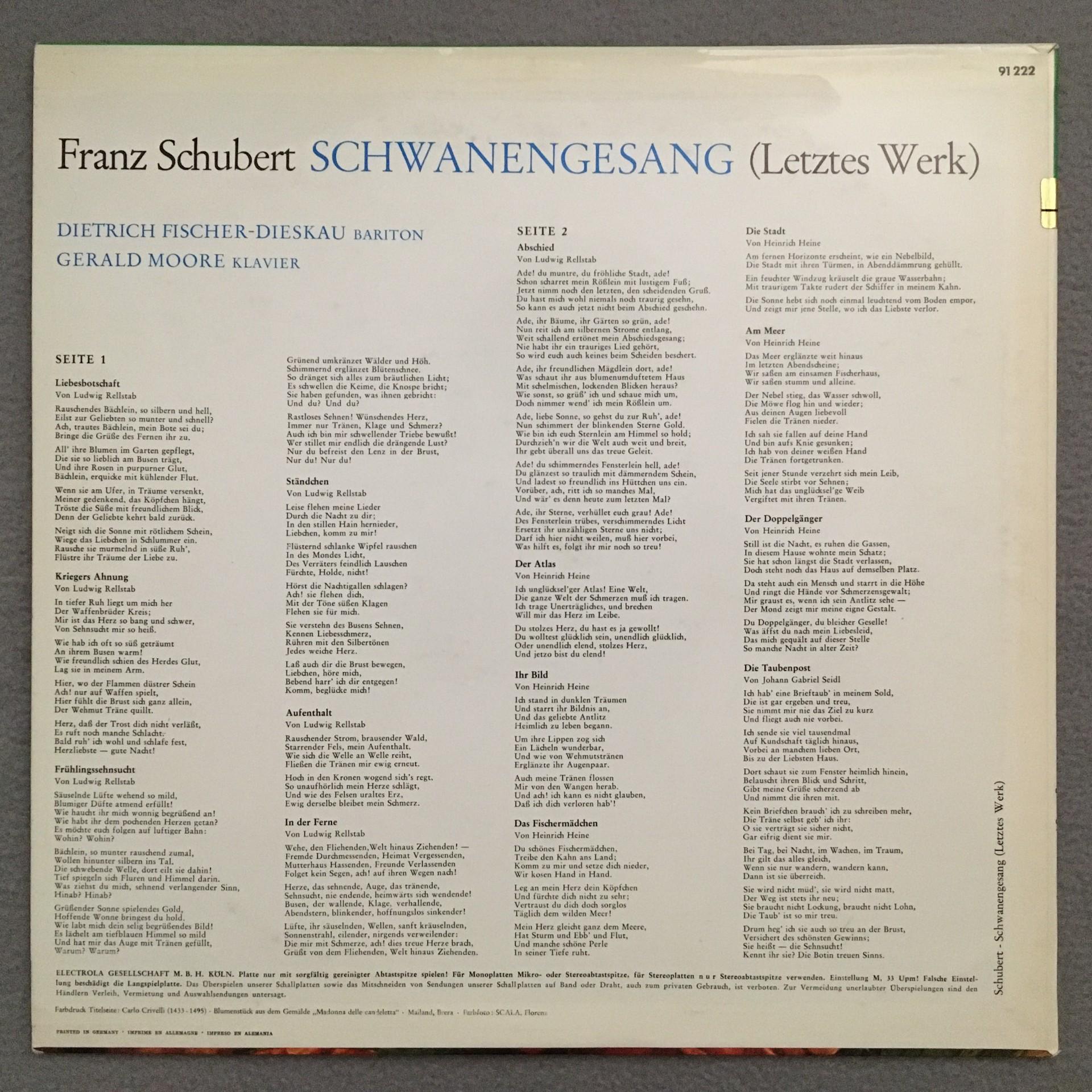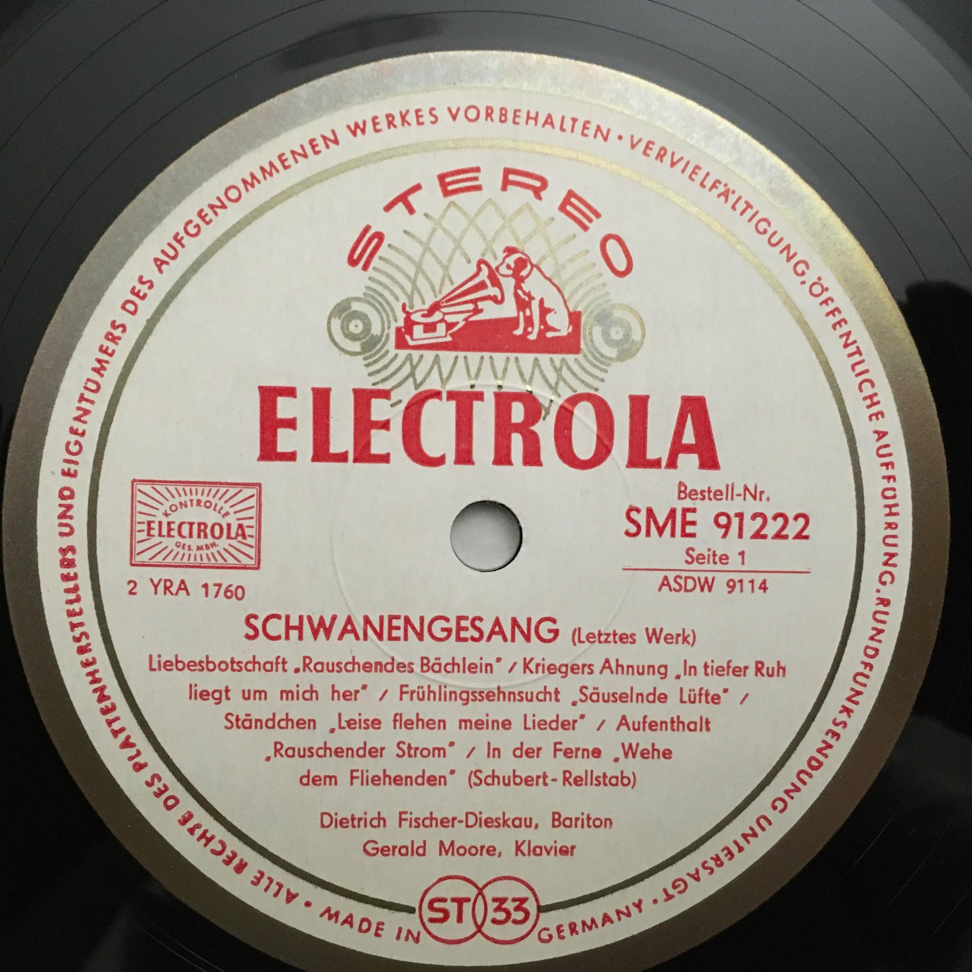 J969 Schubert Swan Singing Fischer-Dieskau Moore Piano Electrola w/g E 91 222 St