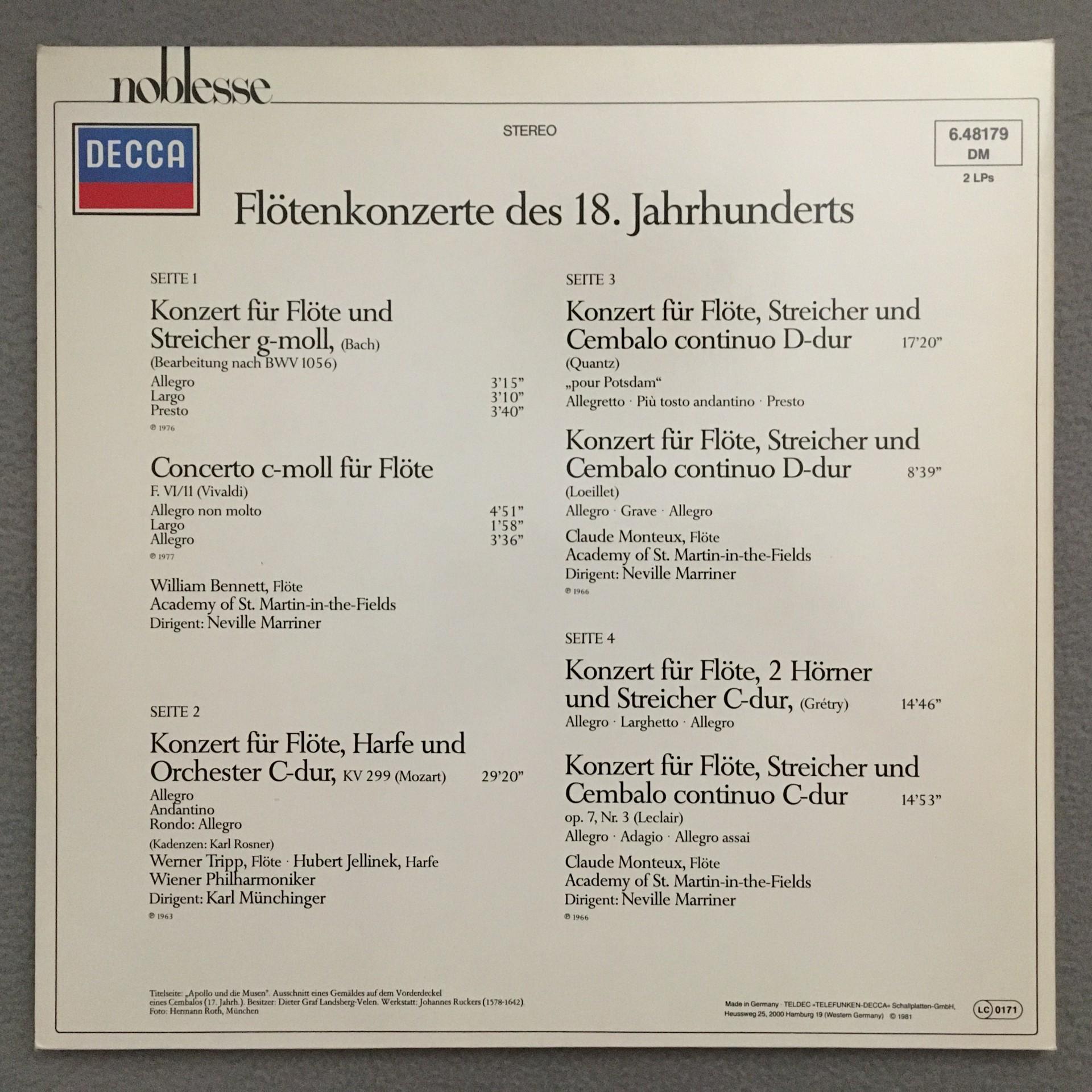 P174 Flute Concertos 18th Century Marriner 2LP DECCA 6.48179 DM Digital Stereo