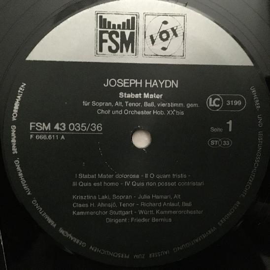 P129 Haydn Stabat Mater Laki Hamari Bernius 2LP VOX FSM 43 035/36 Stereo