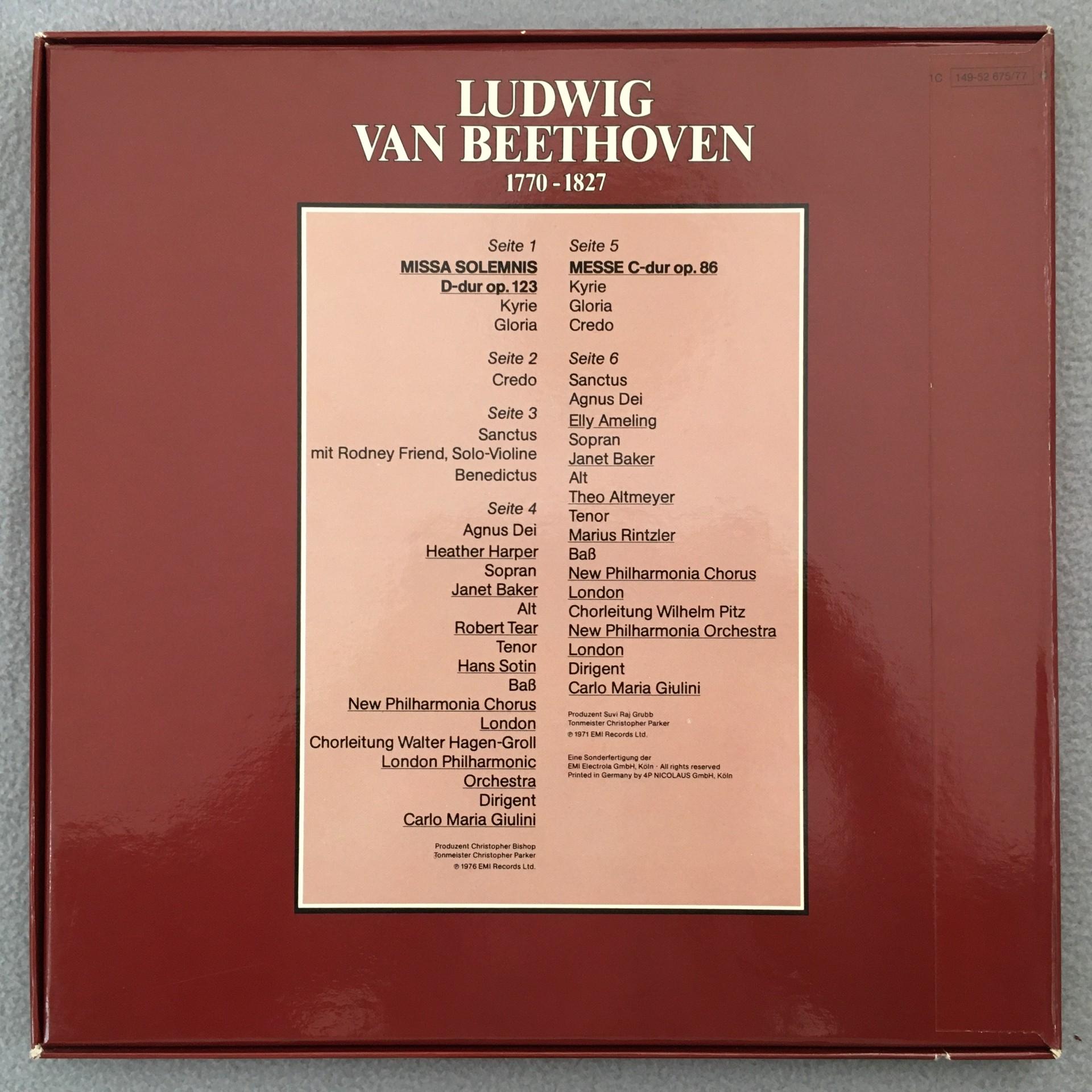C795 Beethoven Missa Solemnis Mass Giulini 3LP EMI 1C 149-52 675/77 Q Quadro