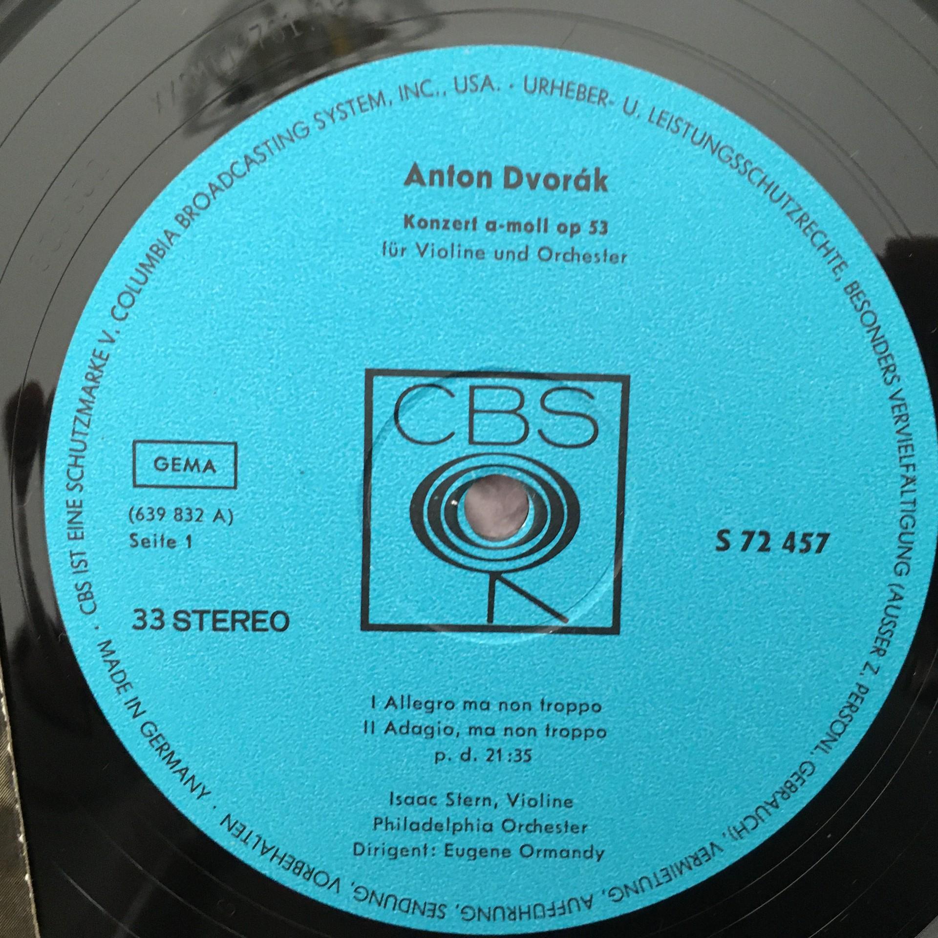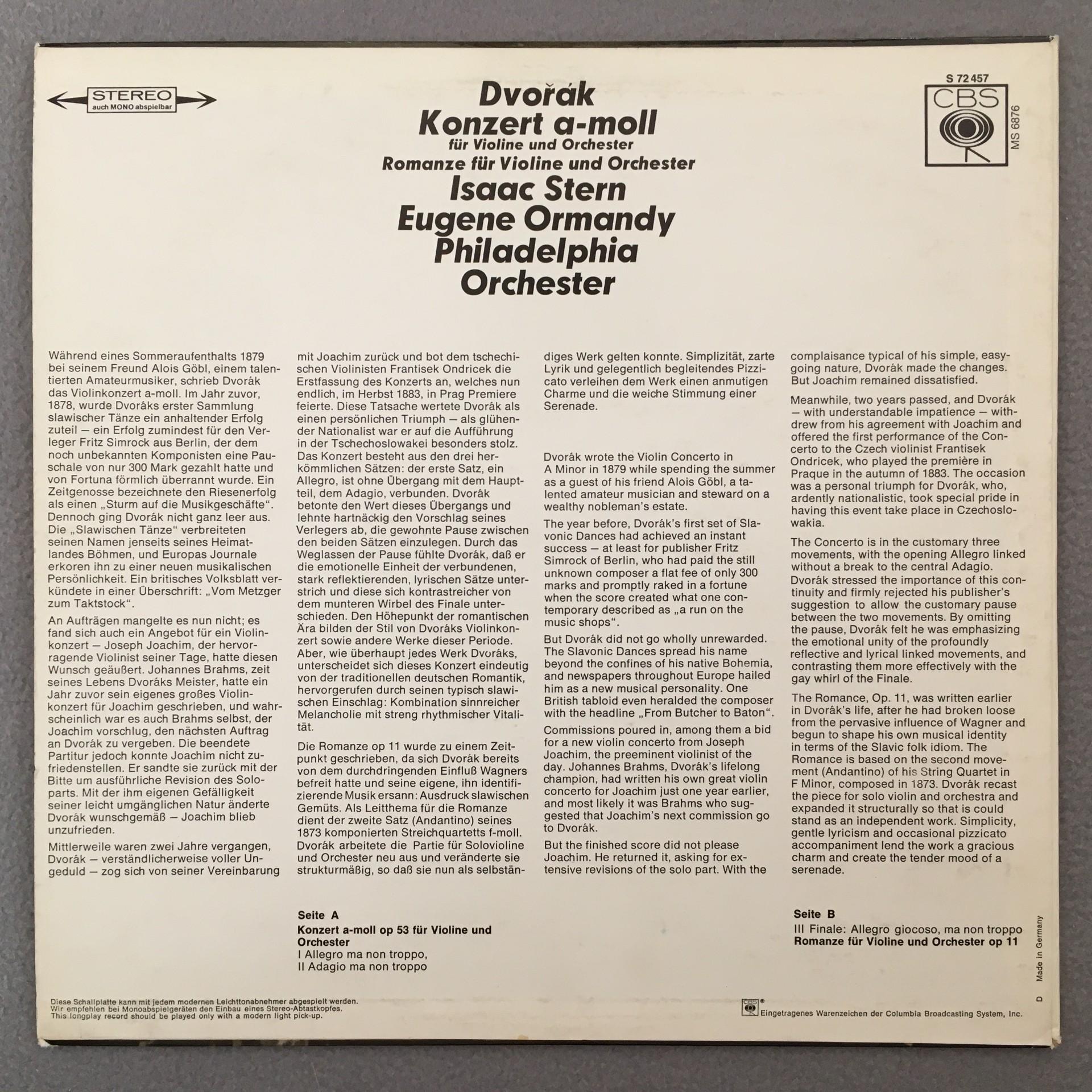 J941 Dvorak Violin Concerto Romance Stern Ormandy CBS S 72 457 Stereo