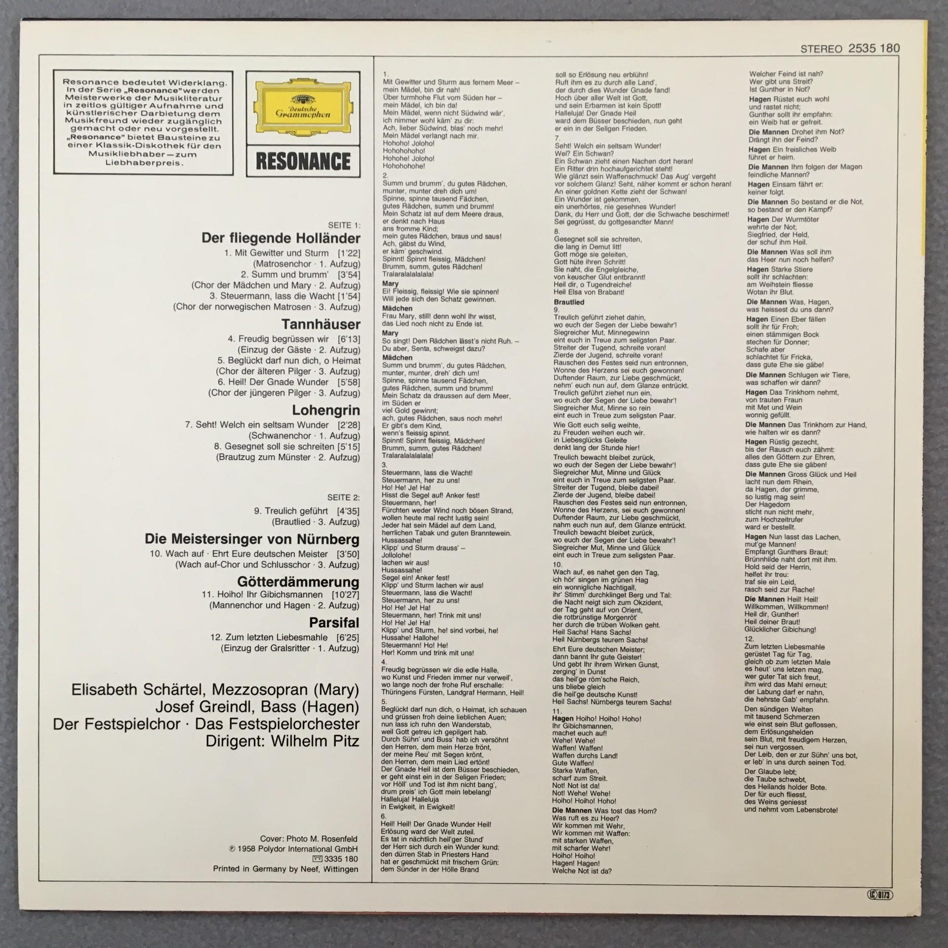 J775 Wagner Opera Choirs Pitz Bayreuther Festspiele DGG 2535 180 Stereo