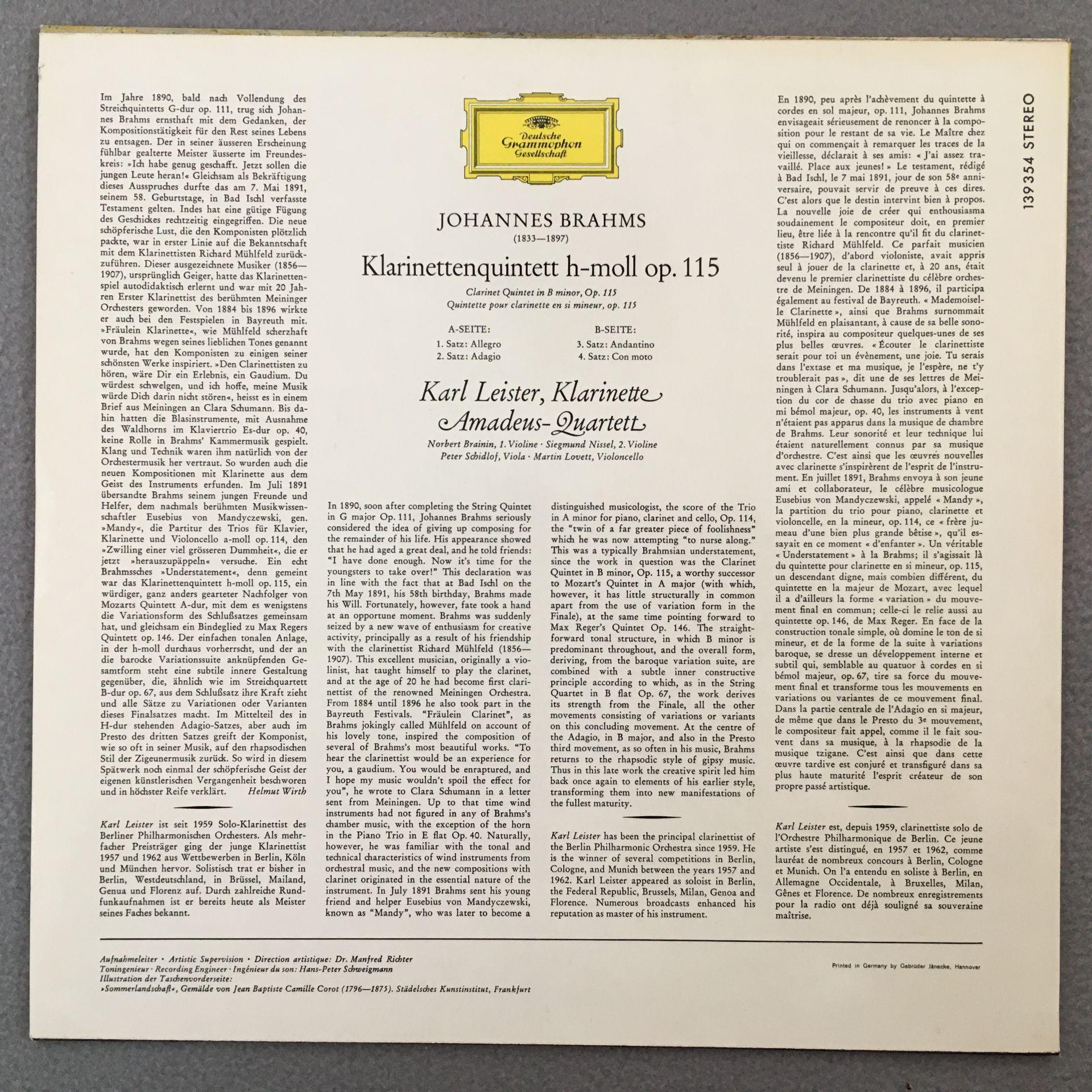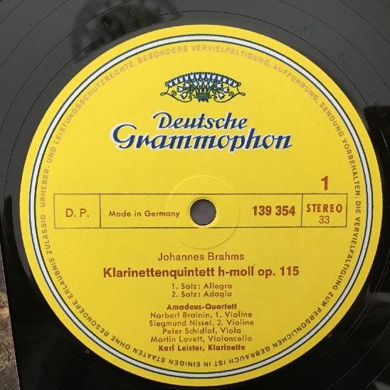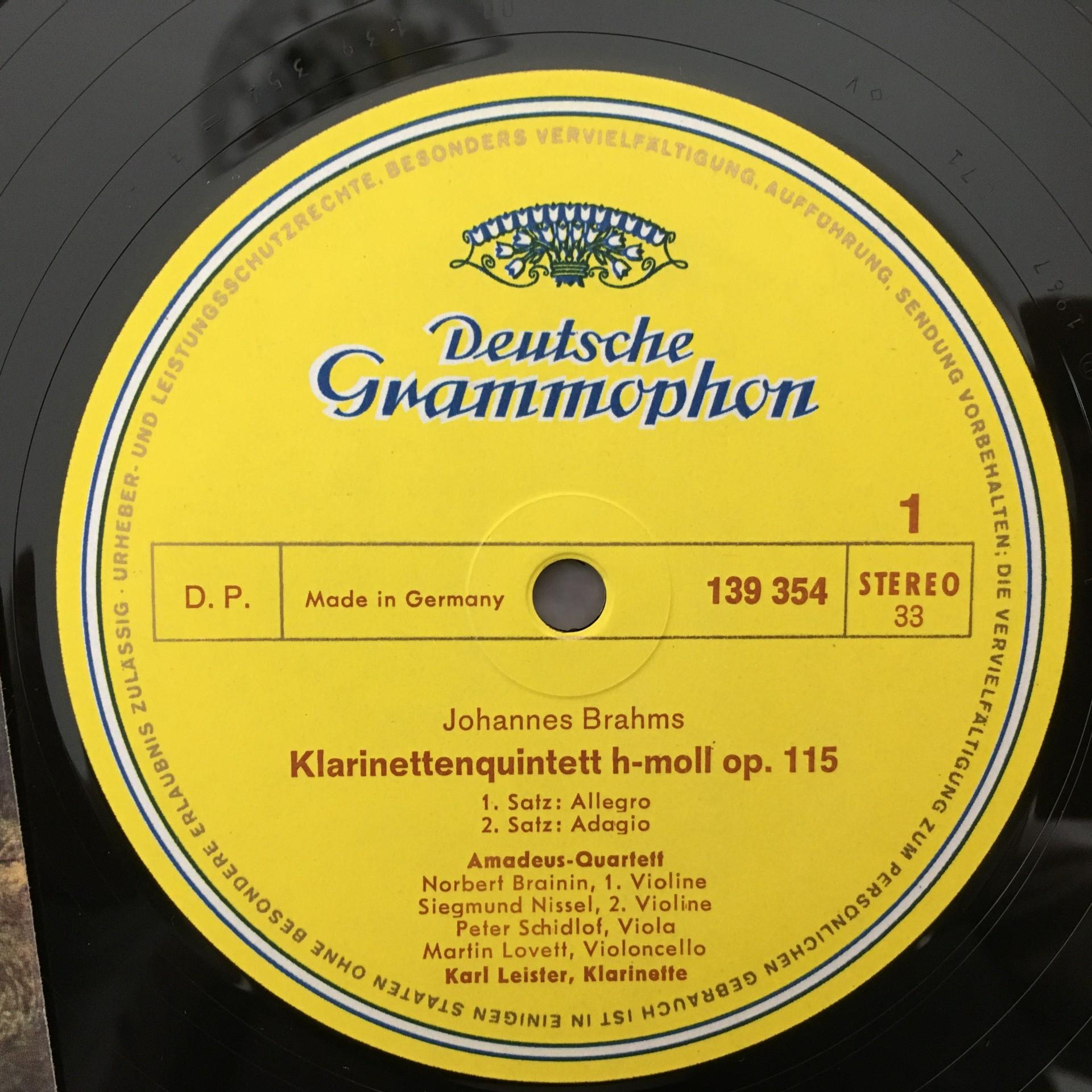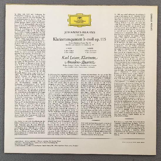 J692 Brahms Clarinet Quintet Leister Amadeus Quartet DGG 139 354 SLPM Stereo