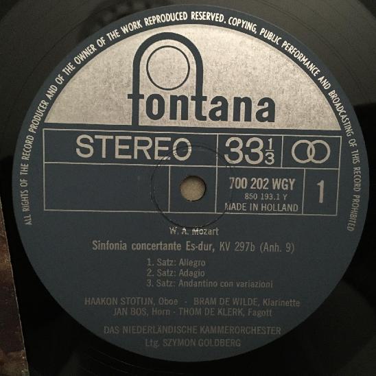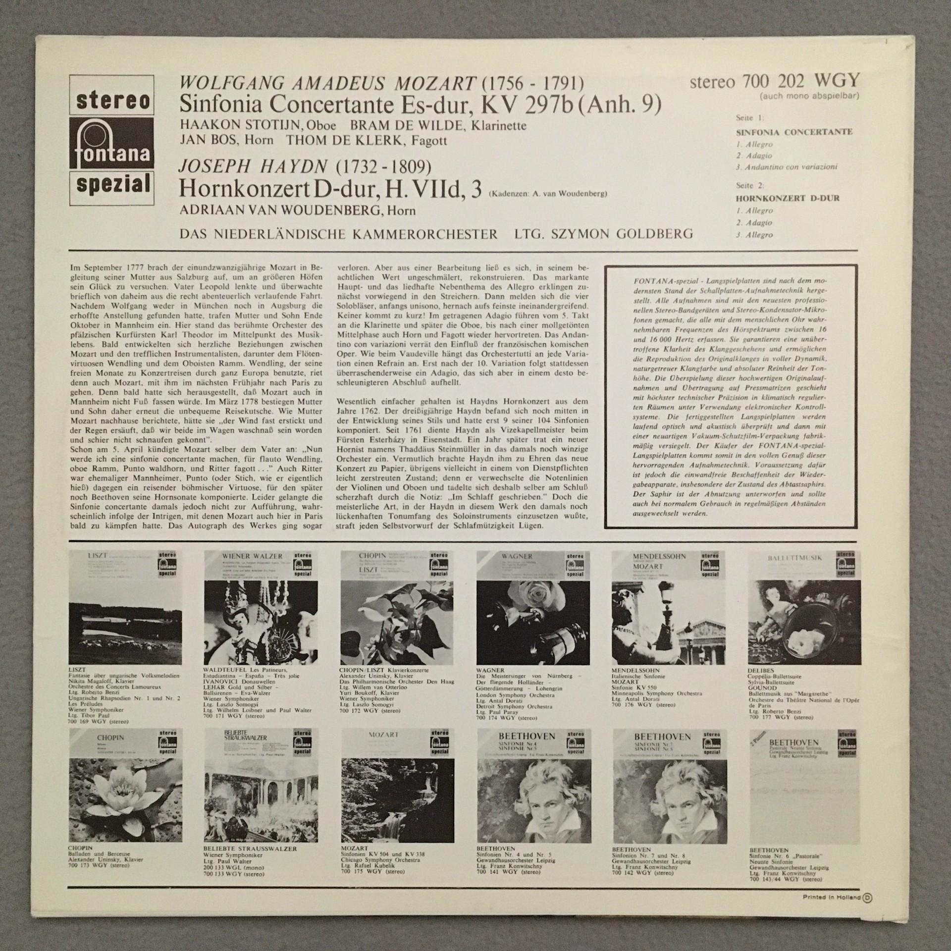 J633 Mozart Sinfonia Concertante Haydn Concerto Goldberg Fontana 700 202 Stereo