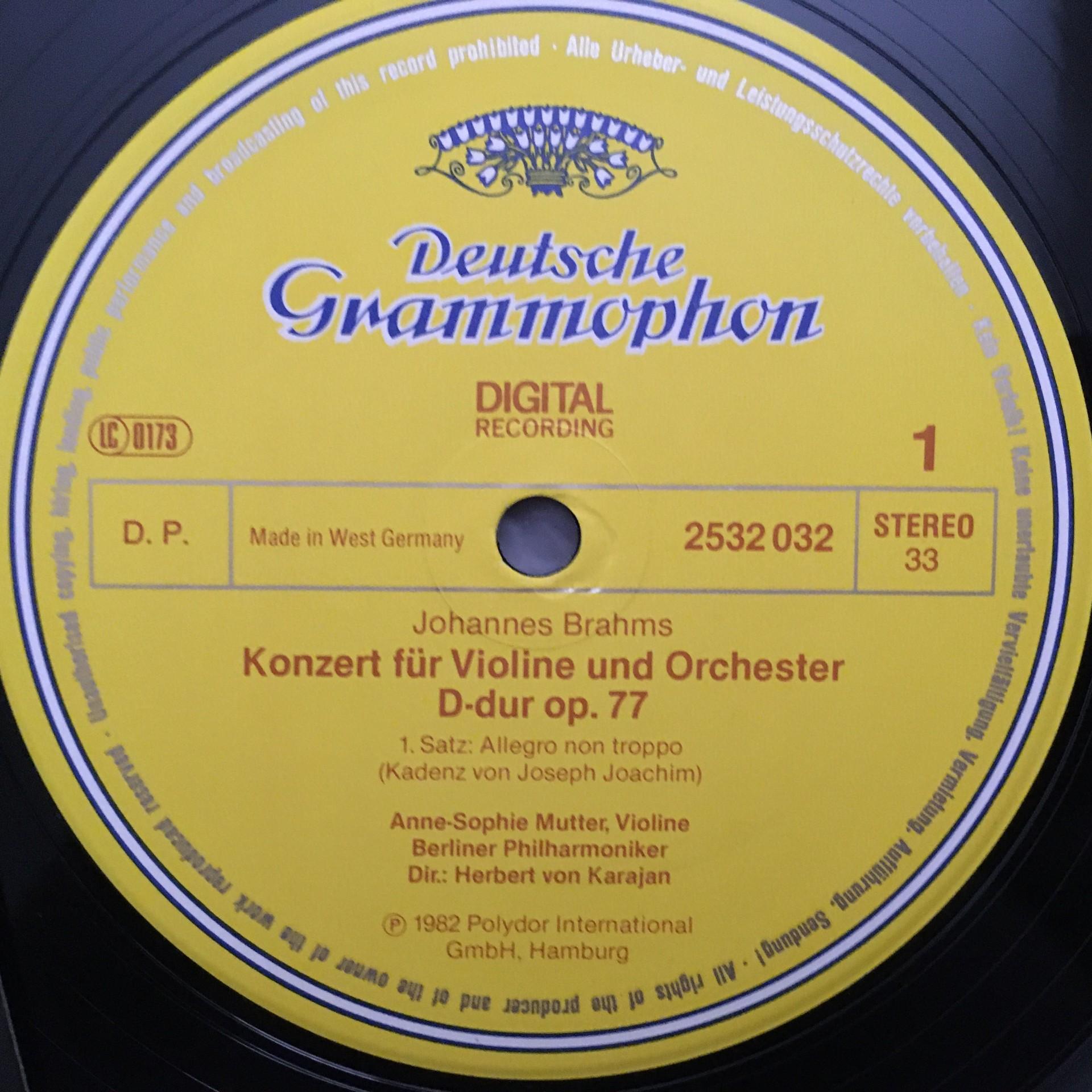 J609 Brahms Violin Concerto Mutter Karajan BPO DGG 2532 032 Digital Stereo