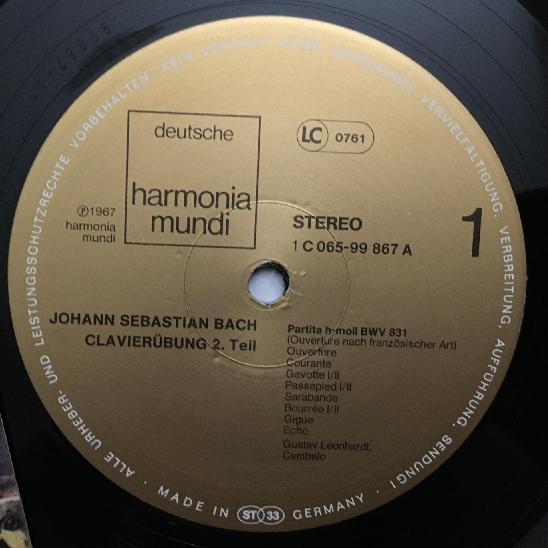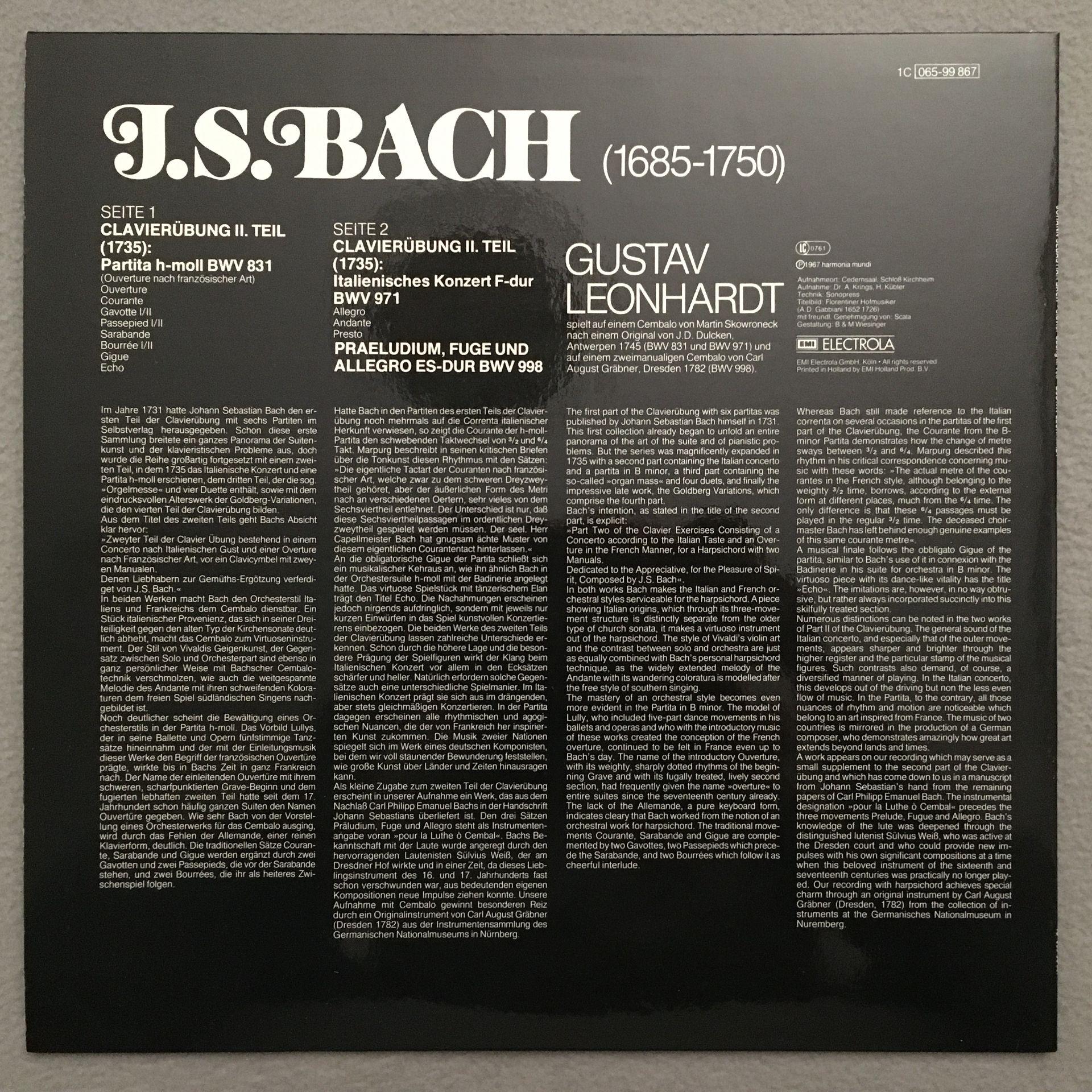J599 Bach Piano Practice Partita Concerto Leonhardt HM 1C 065-99 867 Stereo