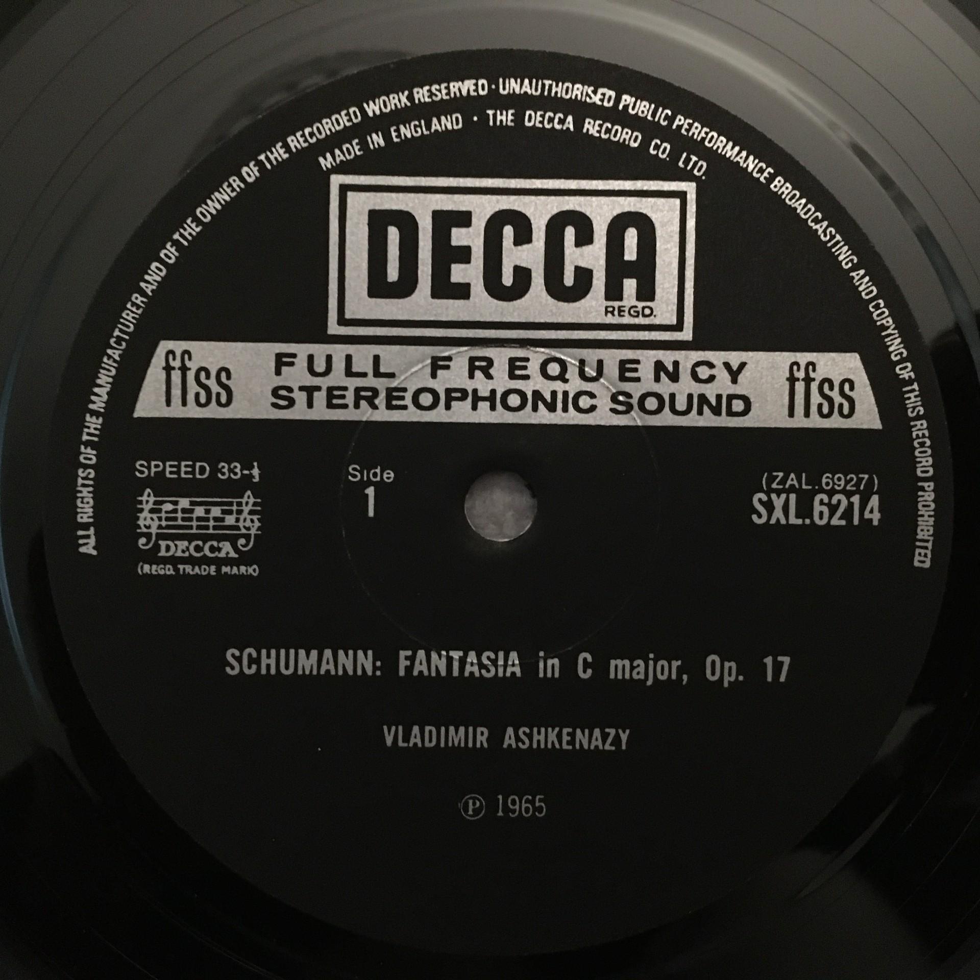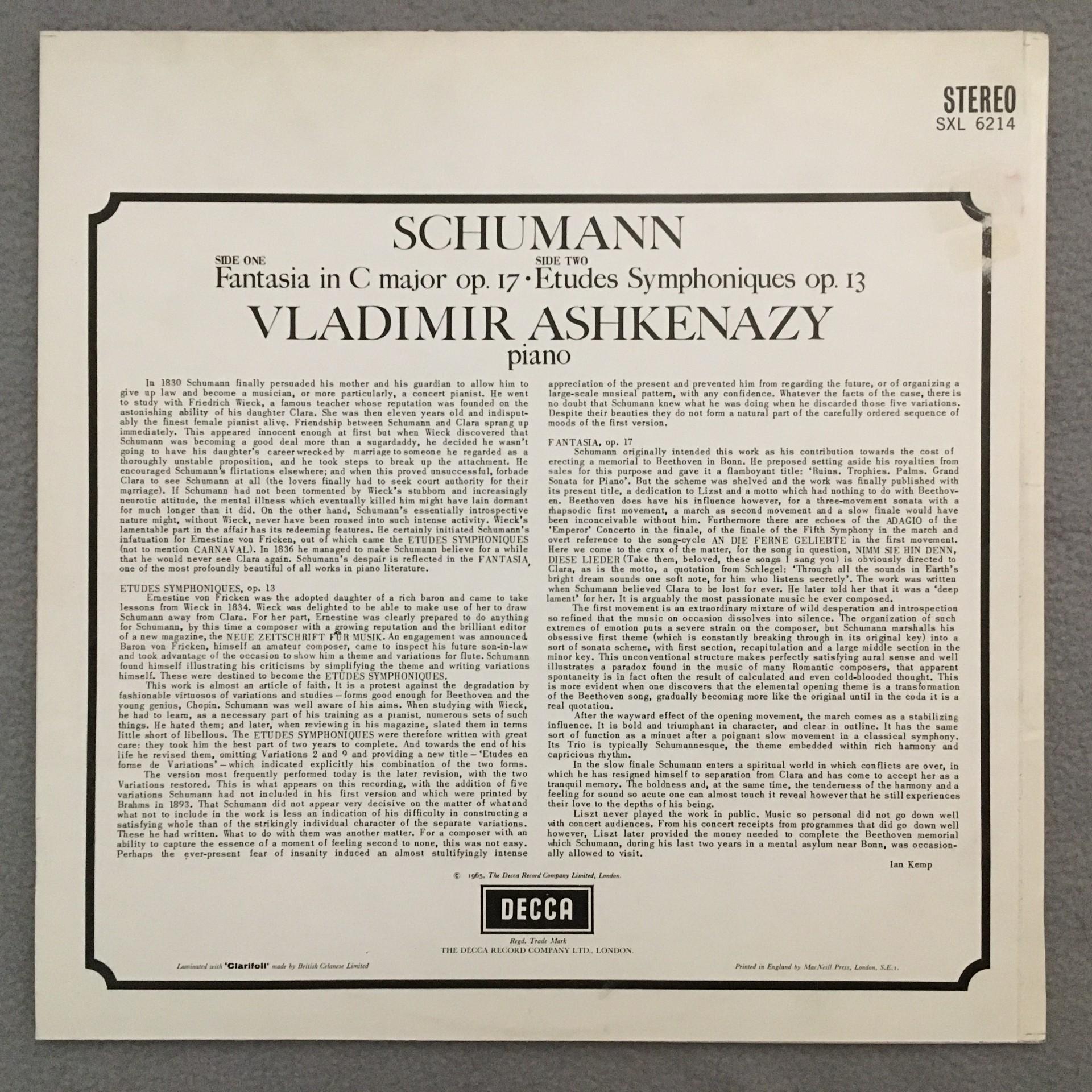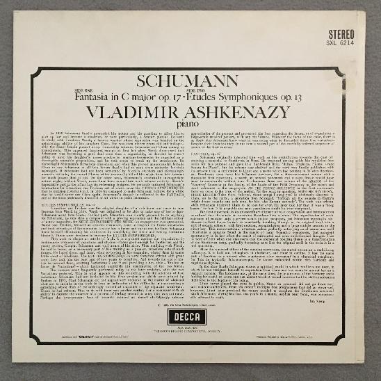 J606 Schumann Fantasy Symphonic Etudes Ashkenazy DECCA SXL 6214 Stereo