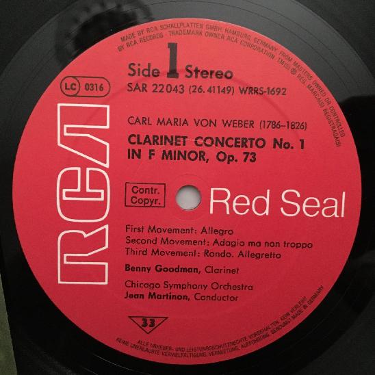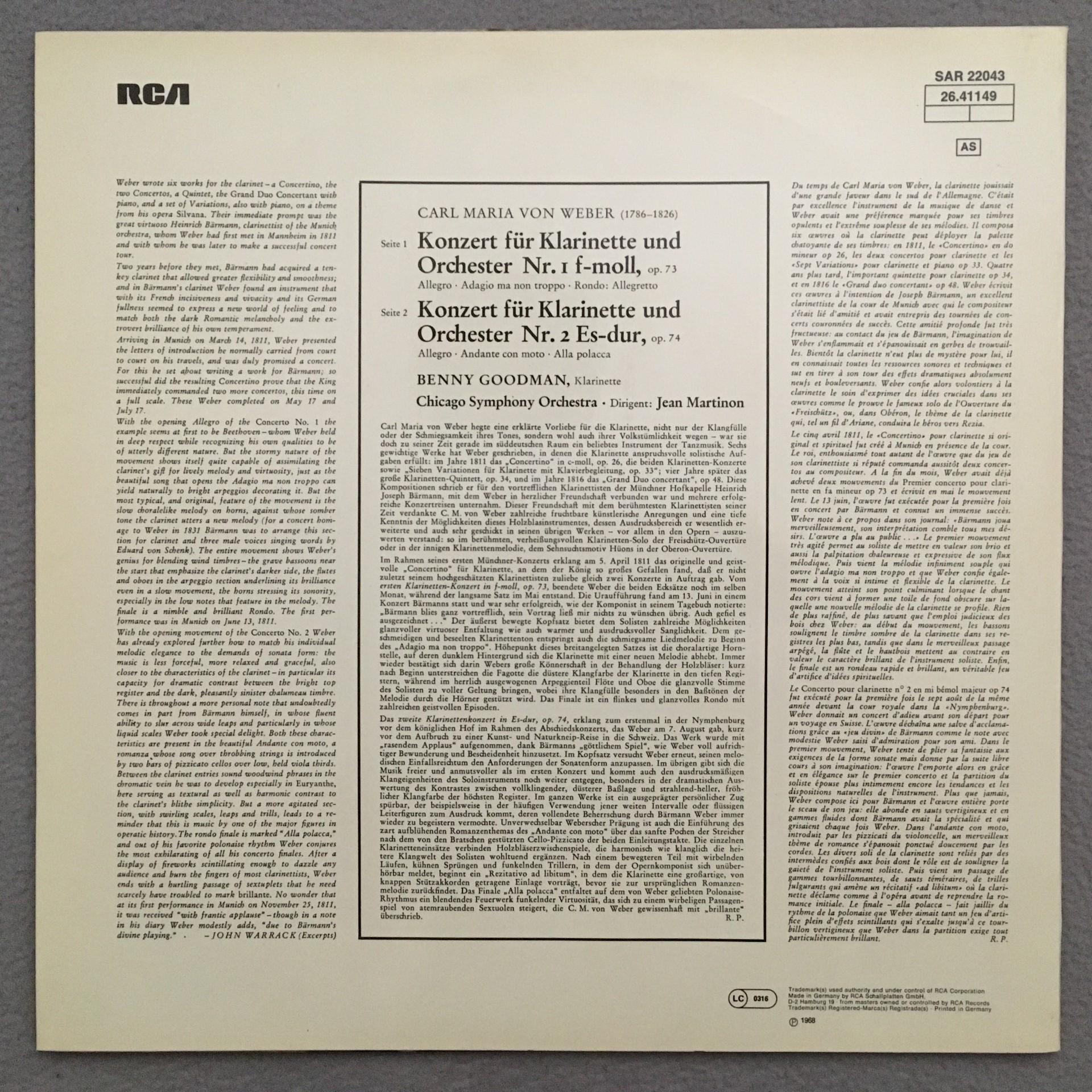 J516 Weber Clarinet Concertos Goodman Martinon RCA 26.41149 AS Stereo