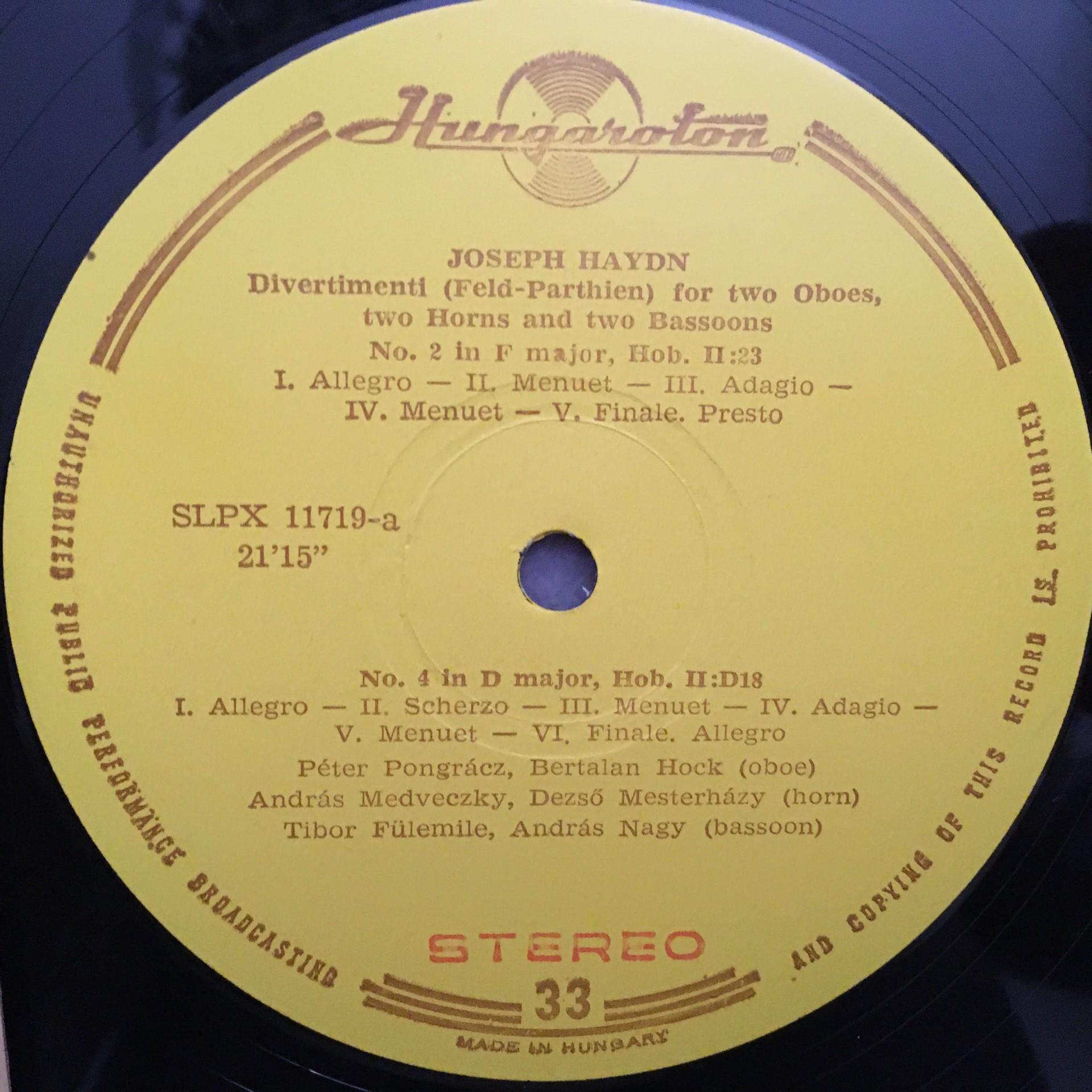 J506 Haydn Divertimentos Pongracz Nagy Hungaroton SLPX 11719 Red Stereo