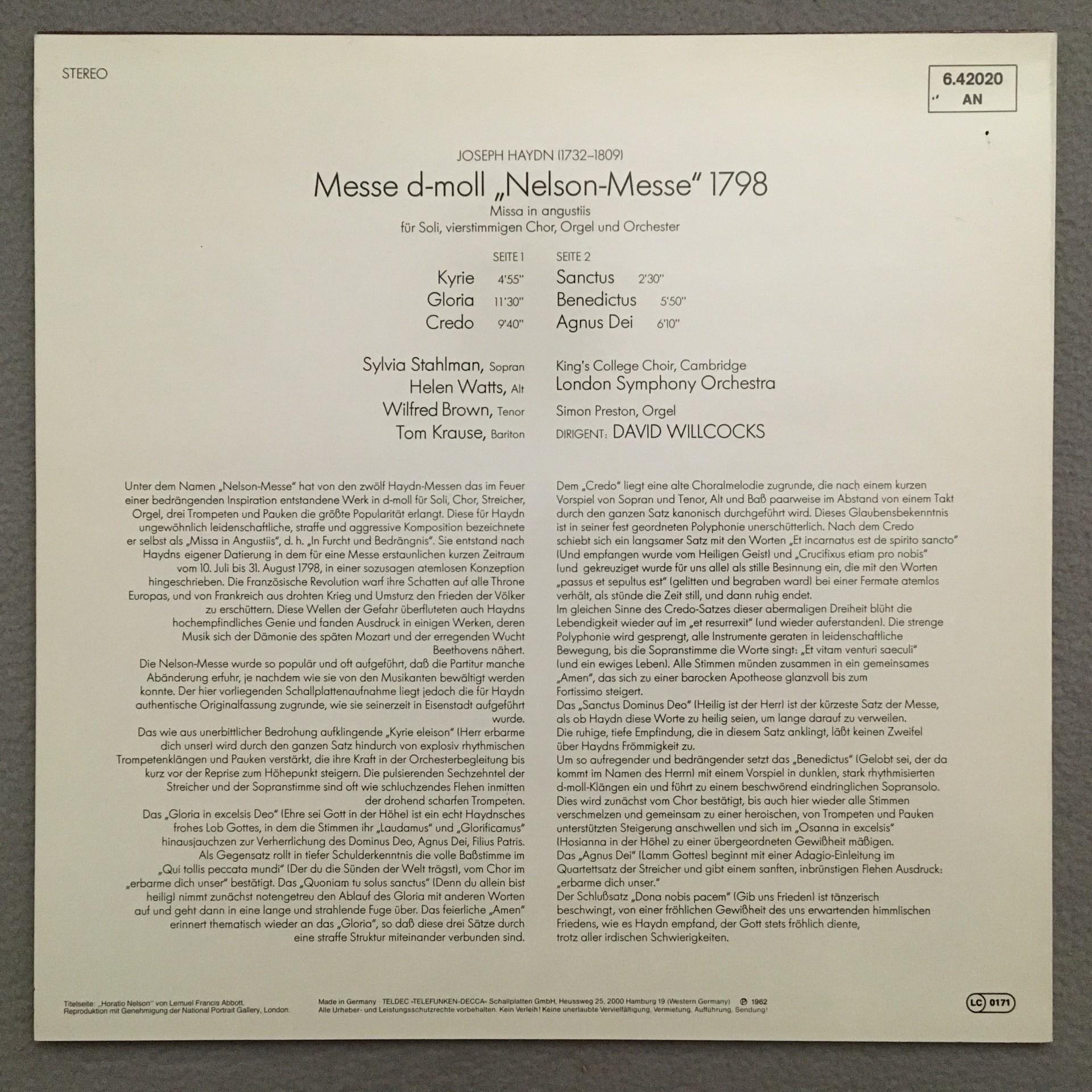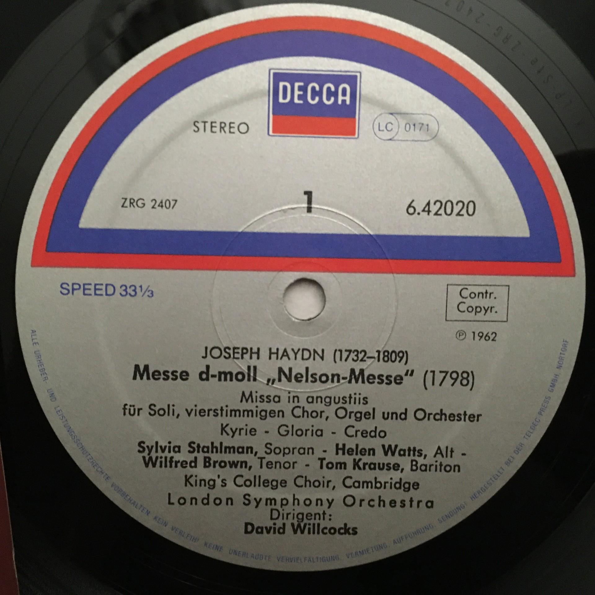 J457 Haydn Nelson Mass Watts Brown Willcocks DECCA 6.42020 AN Stereo