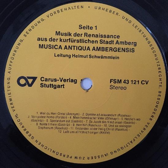 J450 Musica Antiqua Ambergensis Patzak Schwämmlein FSM 43 121 Carus Stereo
