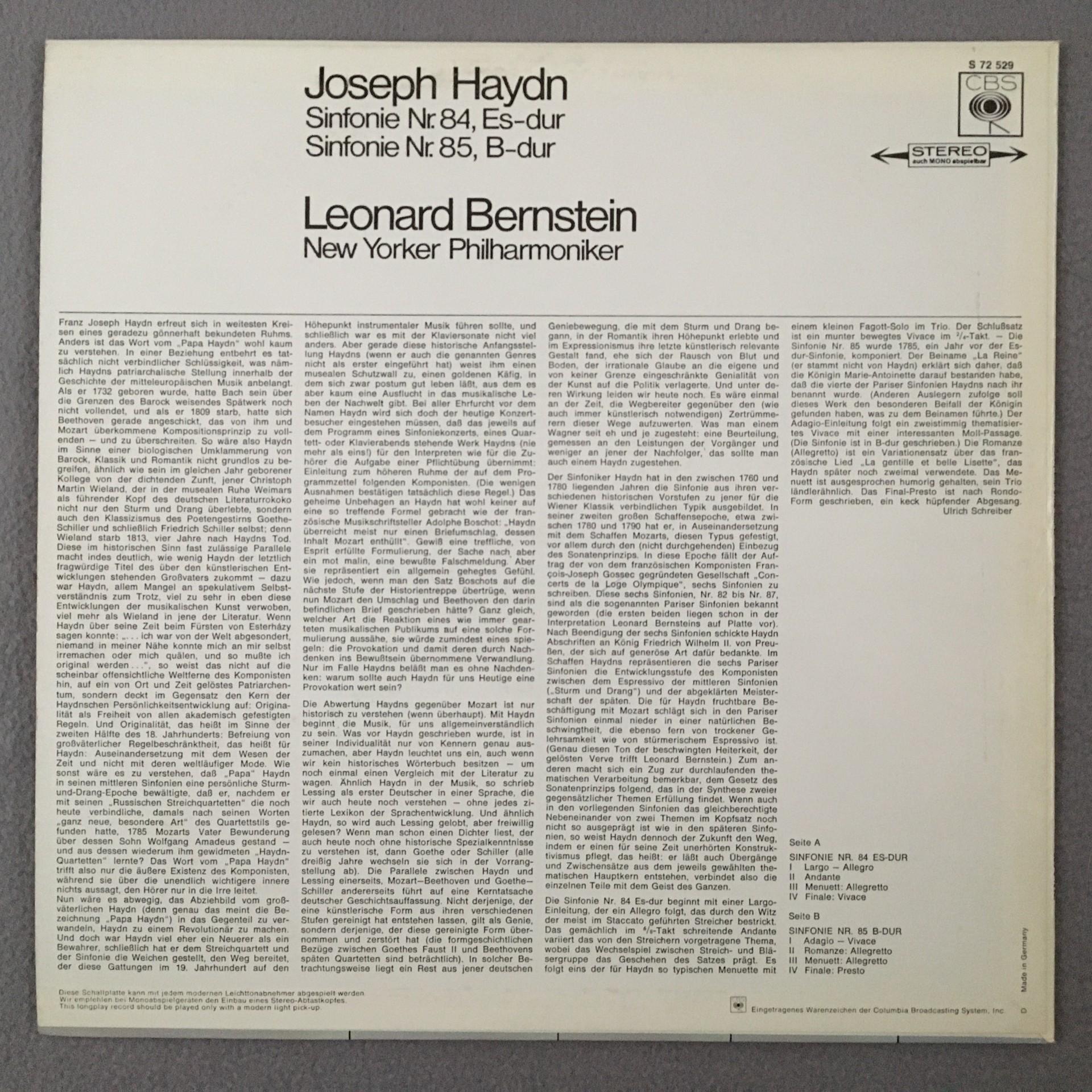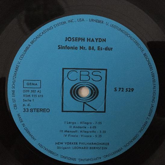 J417 Haydn Symphonies No.84 & No.85 Bernstein CBS S 72 529 Stereo