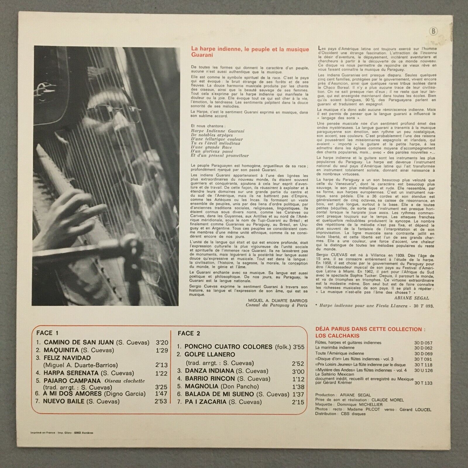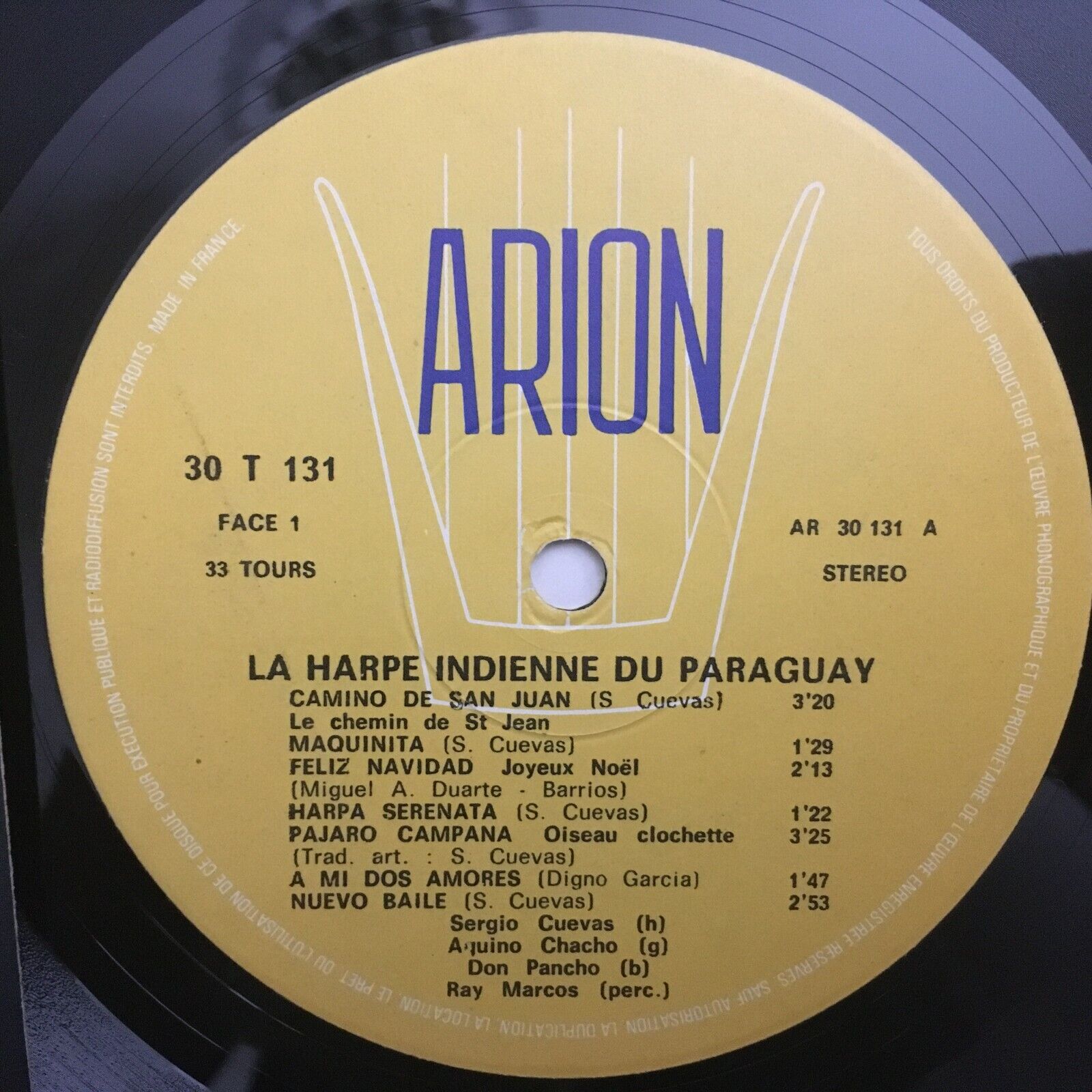 V241 Harp Music from Paraguay Cuevas Arion 30 T 131 Stereo